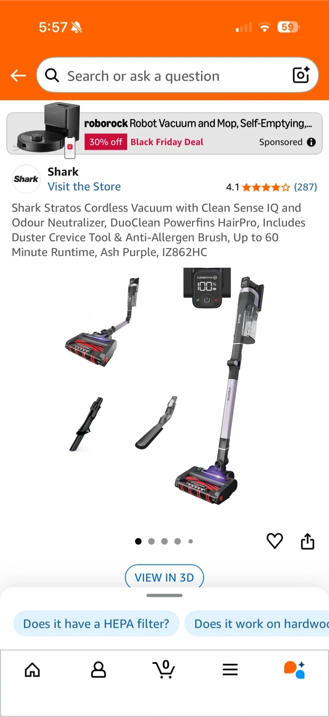 Item Name: Shark Stratos Cordless Vacuum with Clean Sense IQ & Odour Neutralizer, DuoClean Powerfins HairPro (IZ862HC) – Complete Set