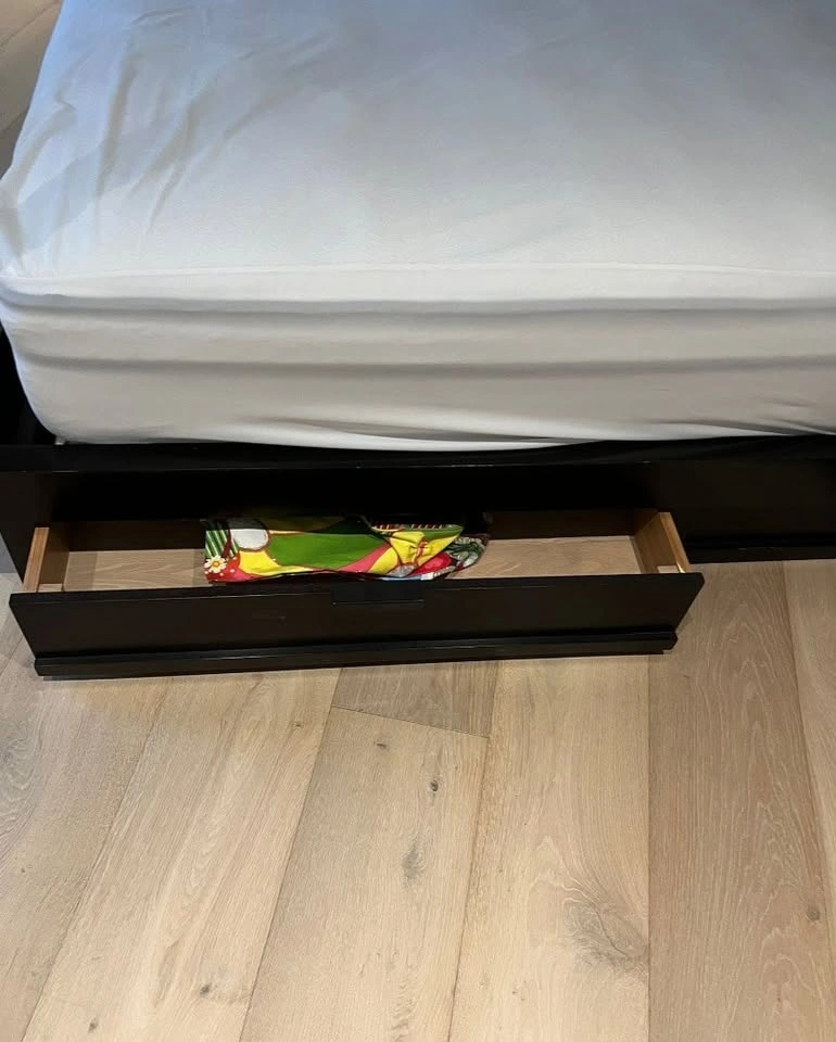 Bed Frame Queen - Solid Wood + 2 Storage Drawers
