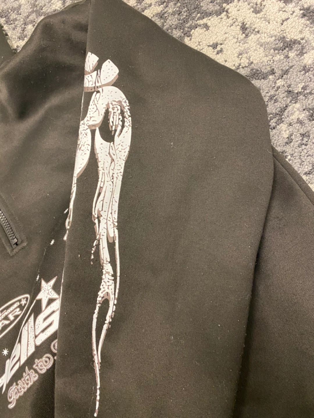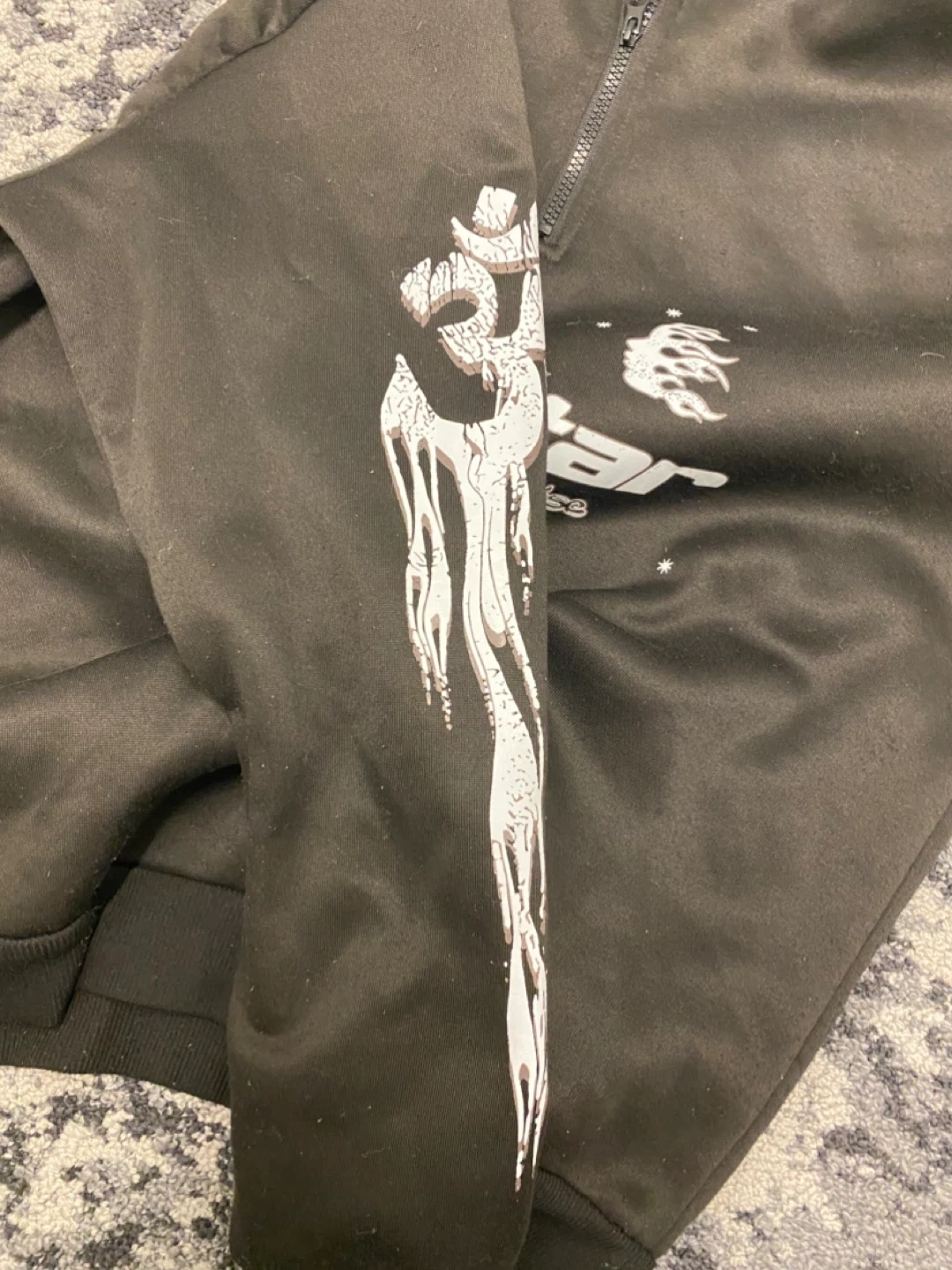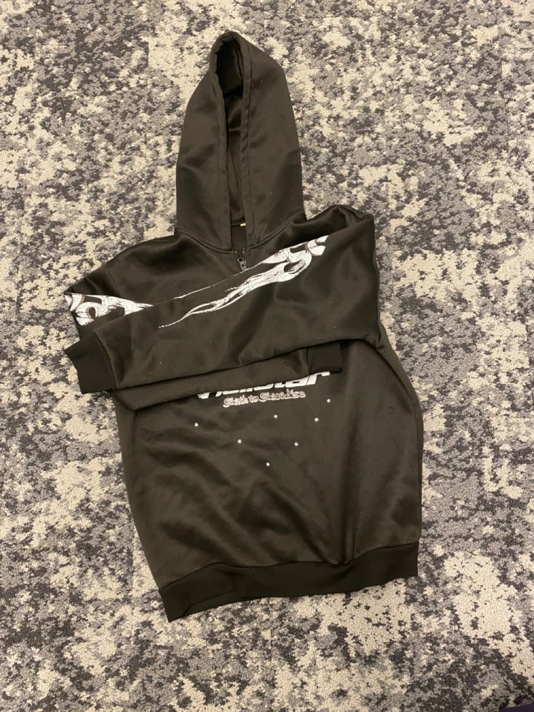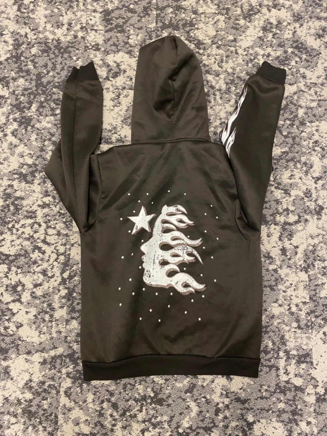 Selling a Hellstar hoodie! It's in great condition and features a unique design on the front, back, and sleeves. Perfect for adding some edgy style to your wardrobe