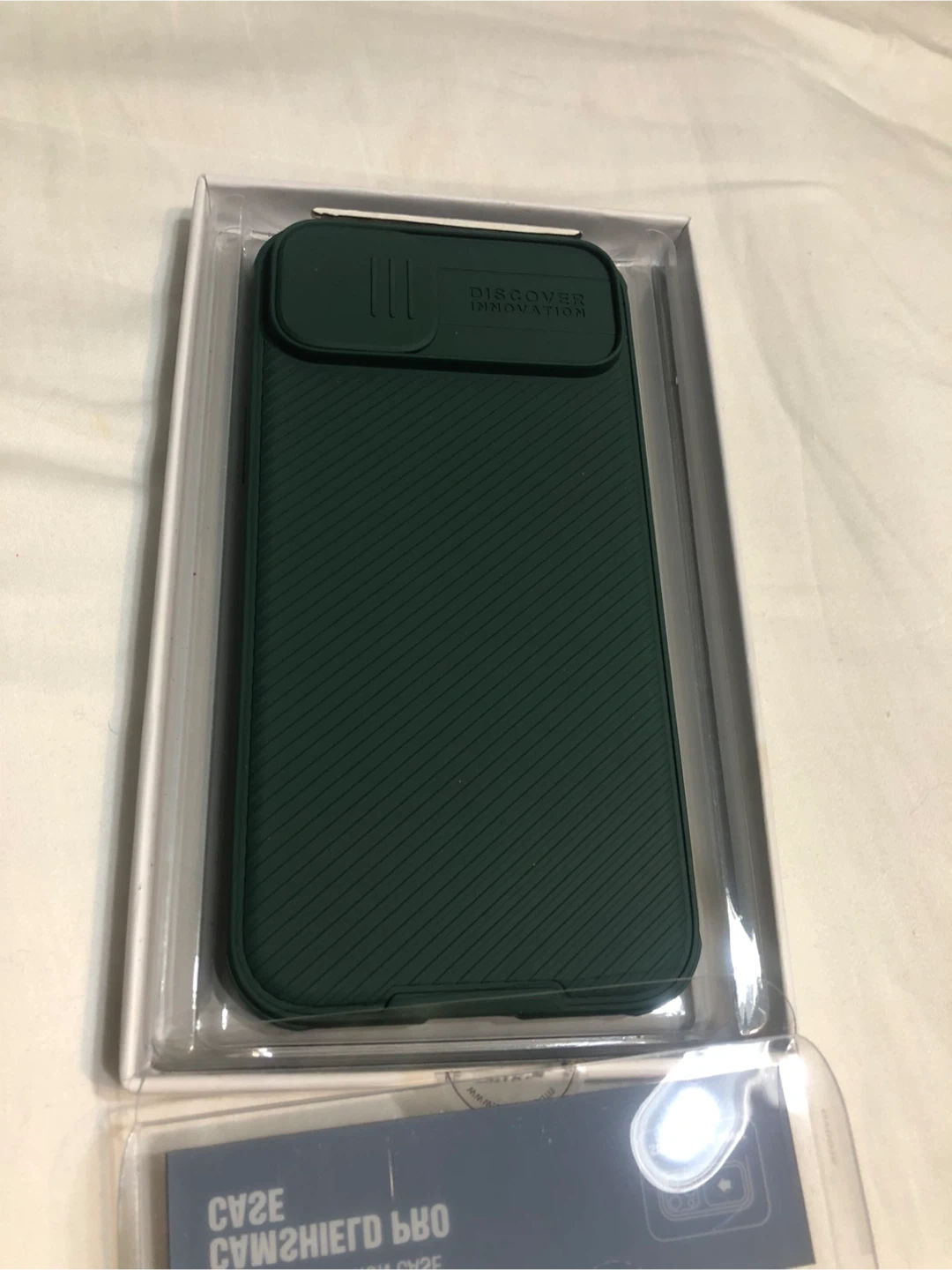 Selling a brand new Nillkin CamShield Pro case for the iPhone 14 Plus! It's a stylish green and offers great phone protection. The case features a slide camera cover for added privacy and lens protection. Comes in the original box!