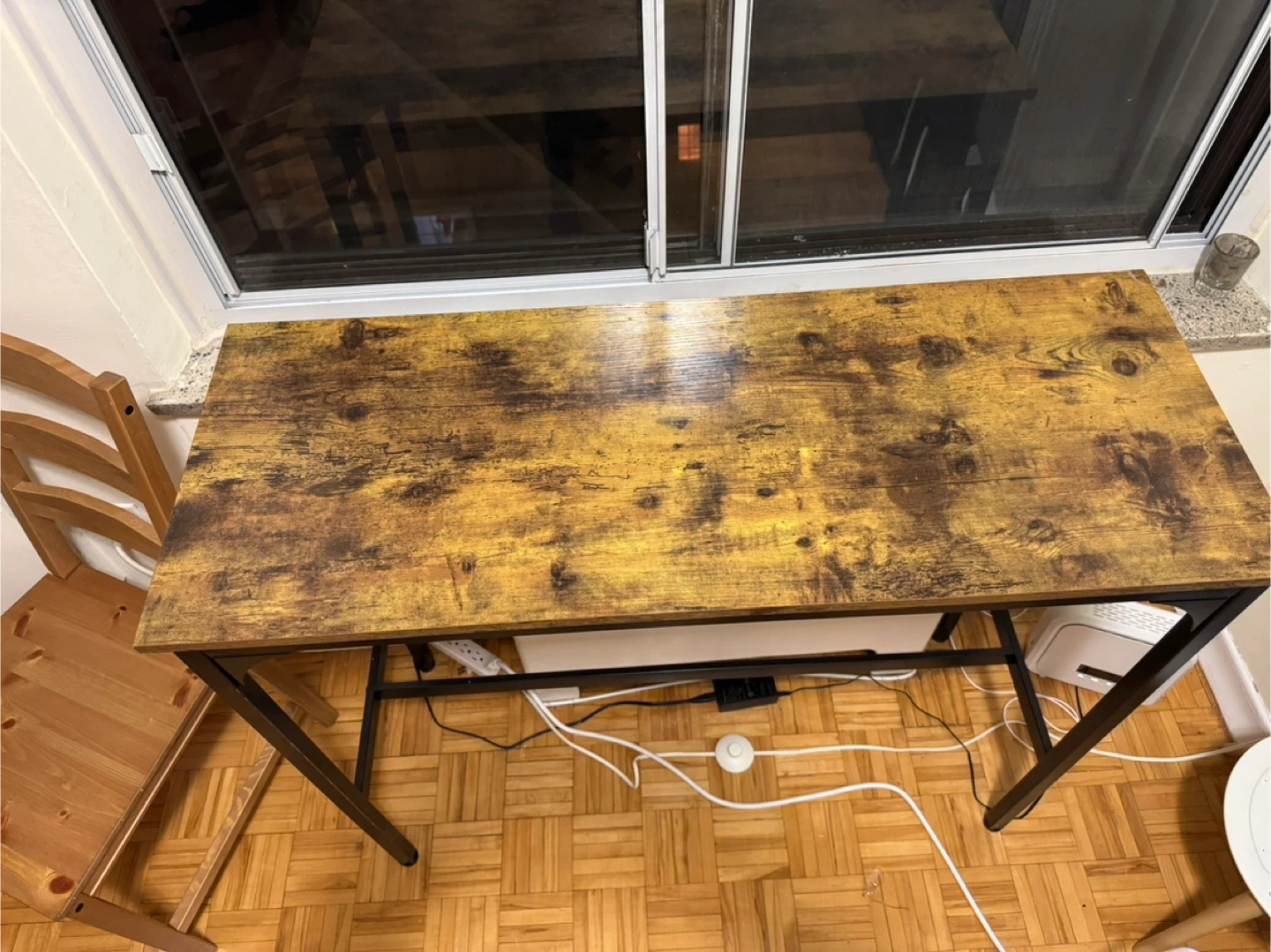 Selling a sleek top table / desk rustic brown with black metal legs. It's in an excellent shape and ready for a new home!
