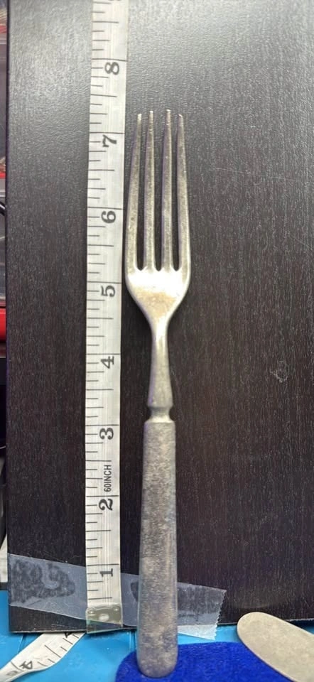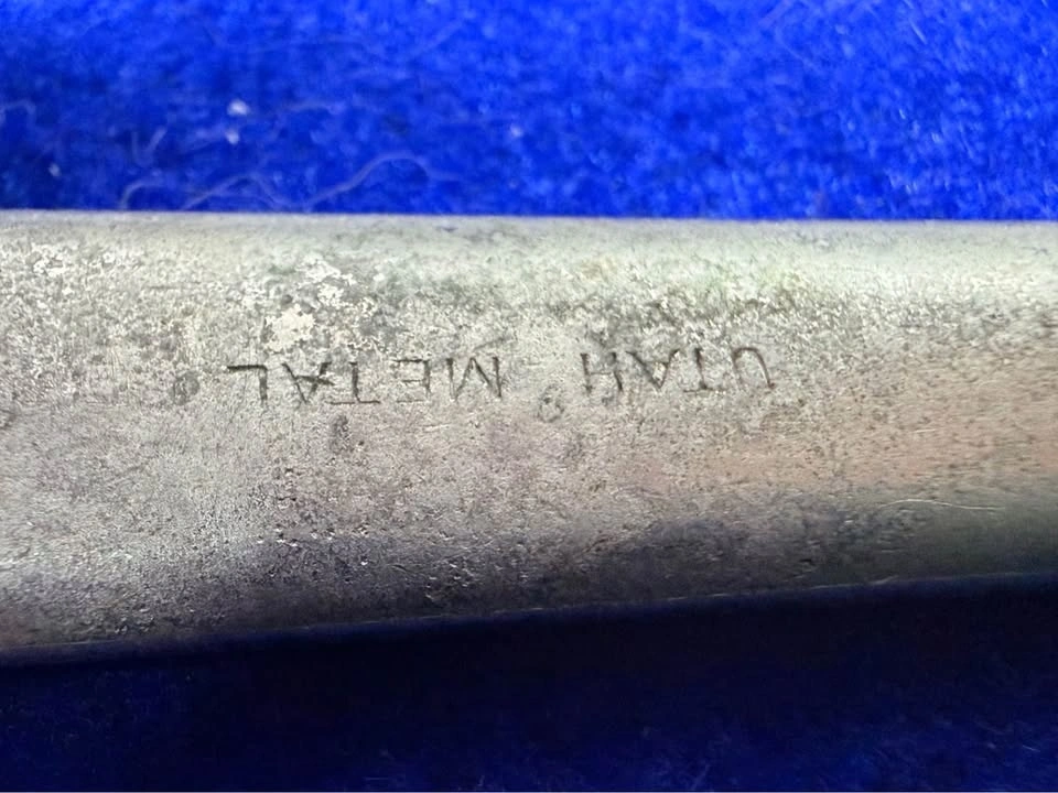 2 forks 2 knives. The forks are stamped “Utah Metal” and the knives are stamped “solid Utah Metal Guaranteed”. Original patina but quite clean. Utah Metal made flatware sets in the 1940s and 50s.
