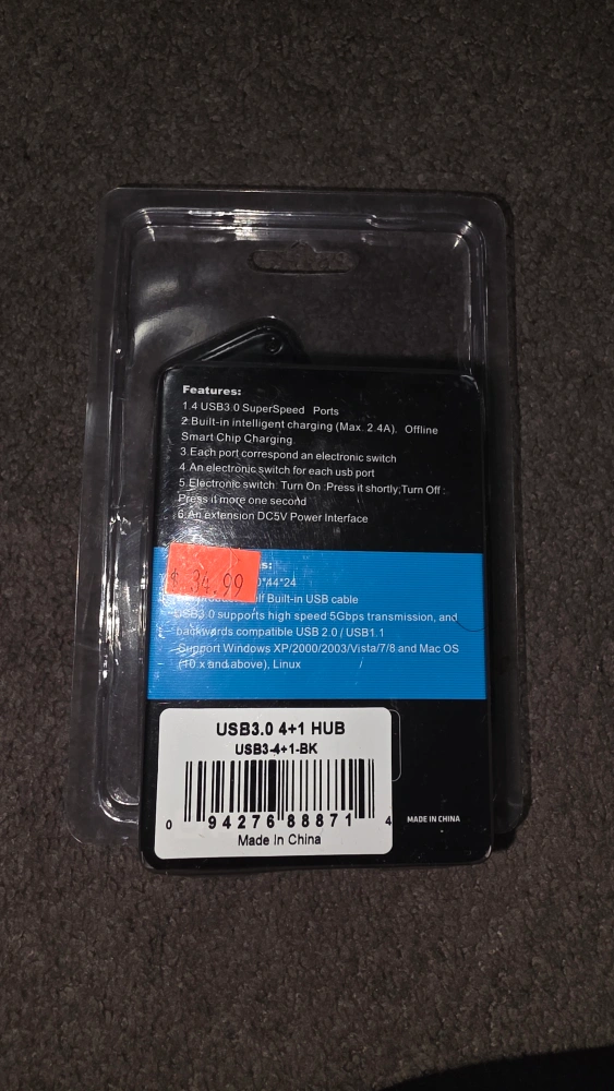 Selling a brand new USB 3.0 hub with 4+1 ports! It has a SuperSpeed port and built-in intelligent charging. Each USB port has an electronic switch to turn it on or off. It also features an extension DC5V power interface. Retails for $34.99. It supports Windows XP/2000/2003/Vista/7/8 and Mac OS (10.x and above), Linux