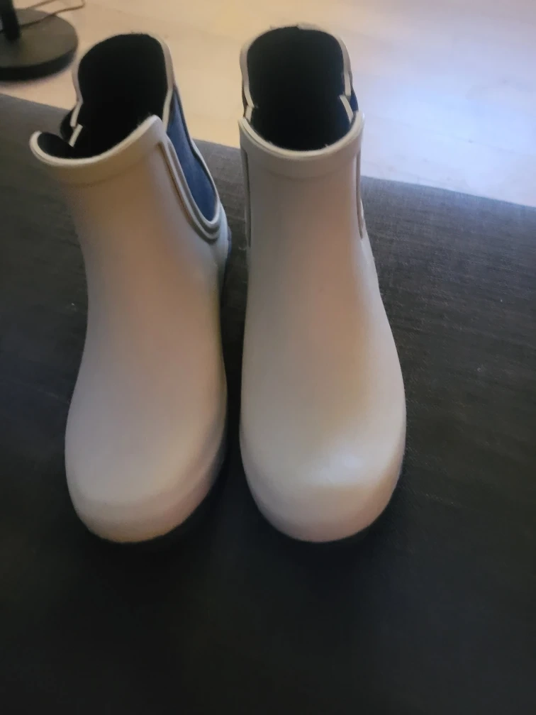 Selling a pair of white London Fog rain boots. They are in good condition and ready for the rainy season!