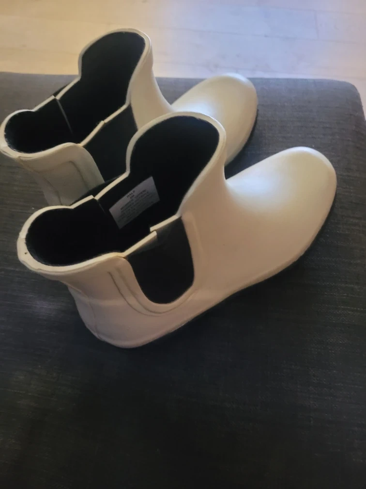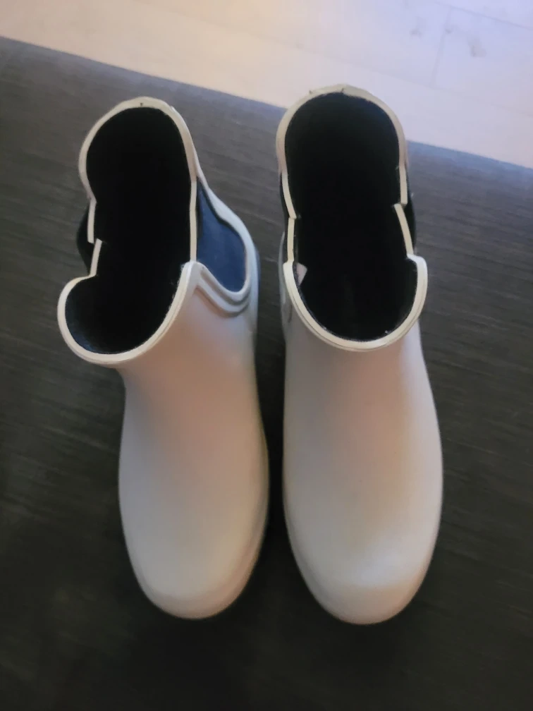 Selling a pair of white London Fog rain boots. They are in good condition and ready for the rainy season!