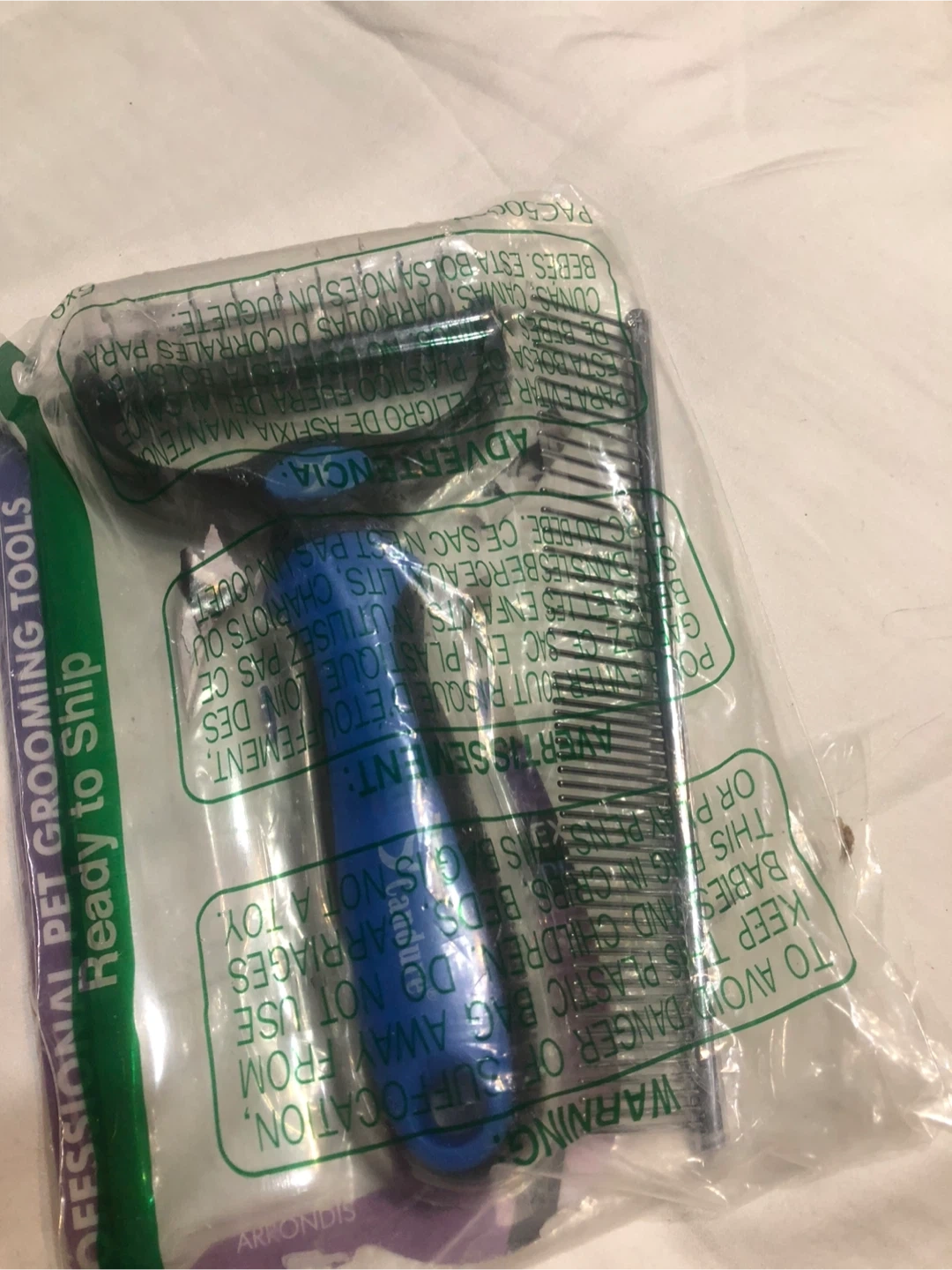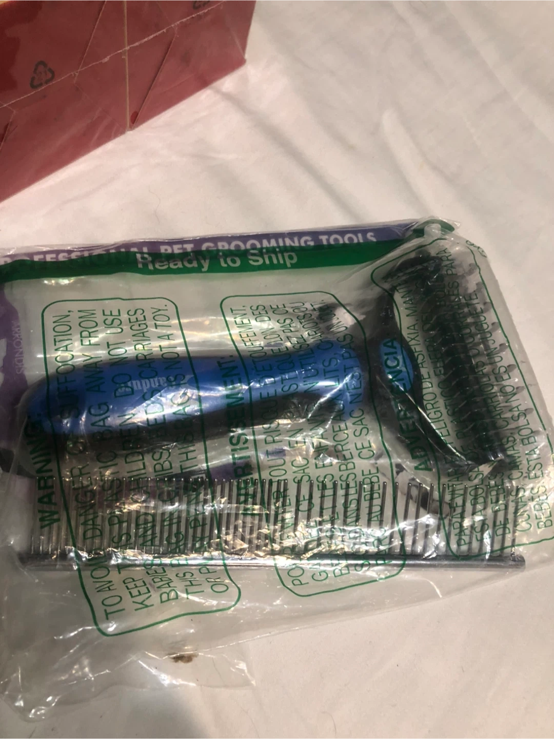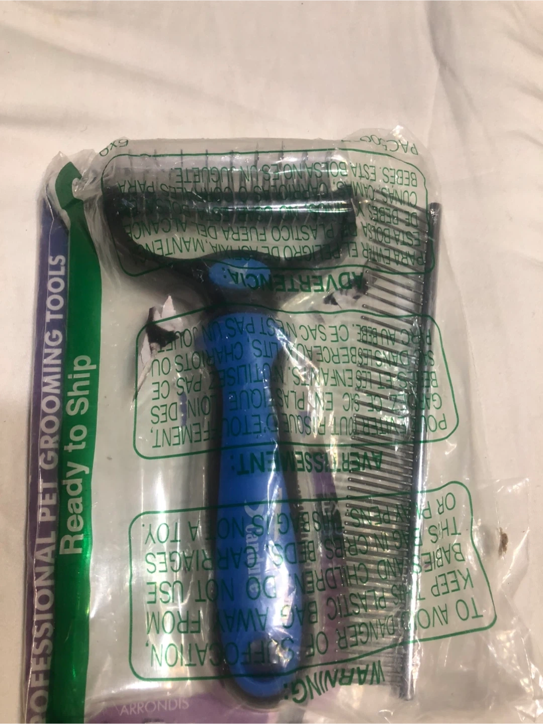 Selling a brand new Candure pet grooming dematting comb. It's still in its original packaging and ready to ship! This tool is perfect for keeping your furry friend's coat looking its best. The comb features stainless steel blades to easily remove mats and tangles, while the ergonomic handle provides a comfortable grip.!