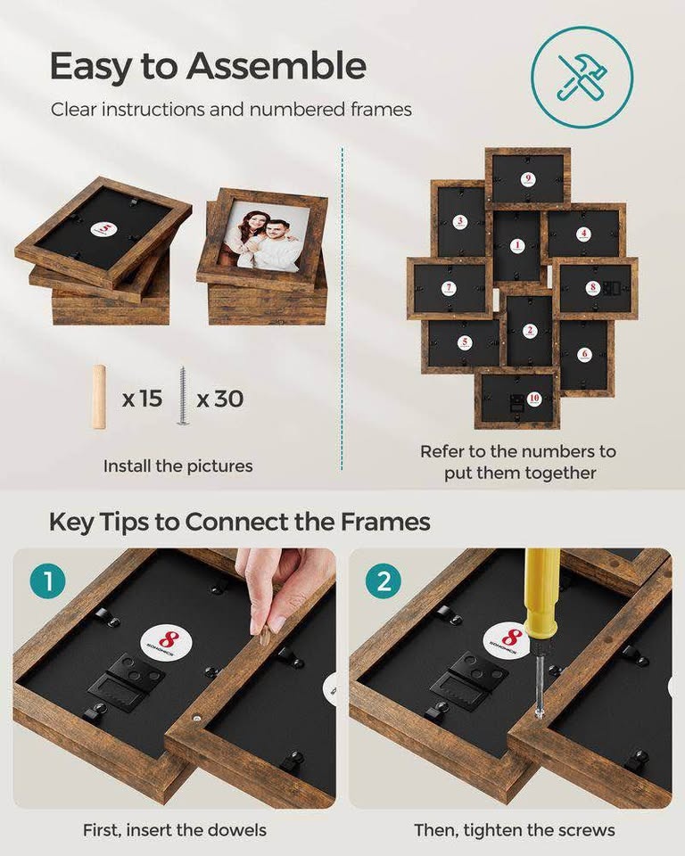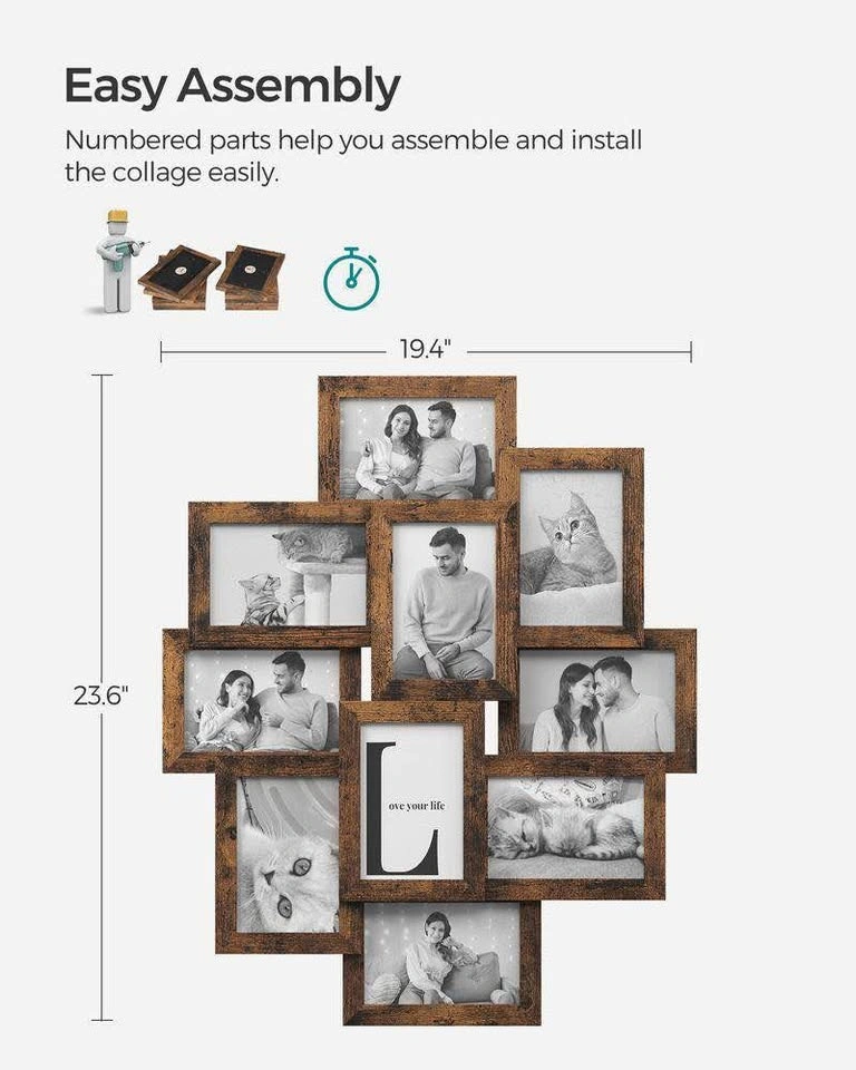 Create a beautiful photo wall with this brand new SONGMICS 4x6” Picture Frame Collage Set in a rustic brown finish.