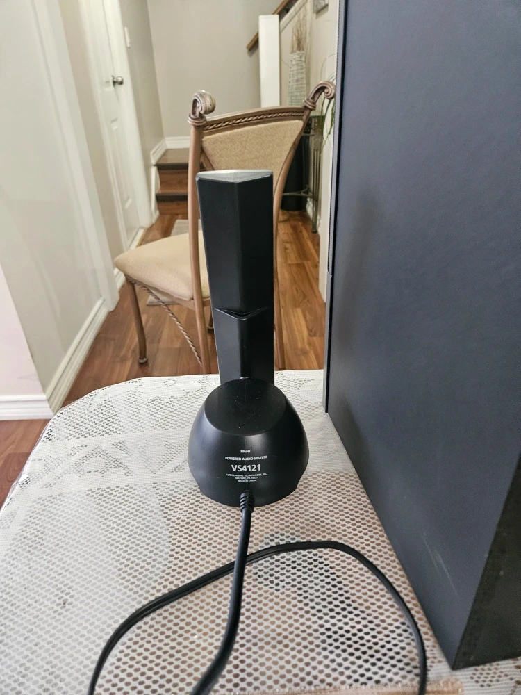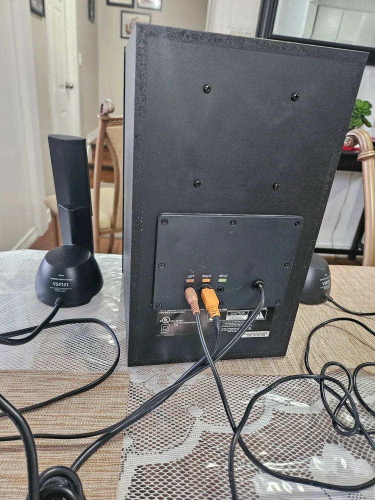 Selling an Altec Lansing VS4121 Powered Audio System. It's a 2.1 speaker system that includes two satellite speakers and a subwoofer. Perfect for your computer or home entertainment setup!