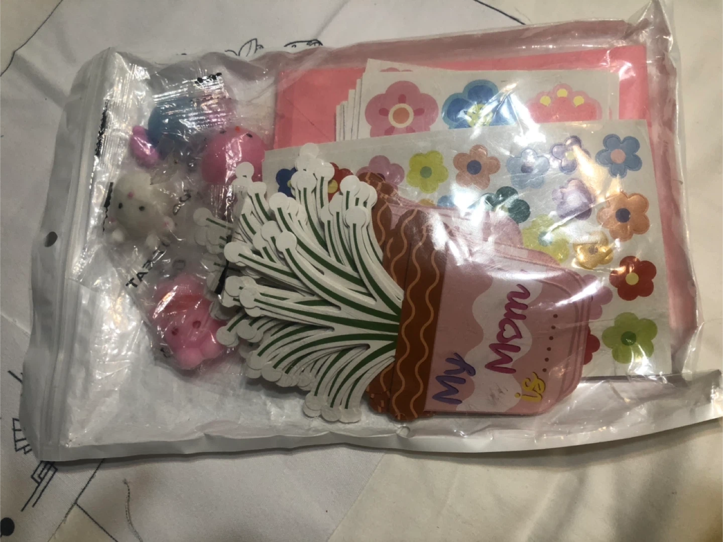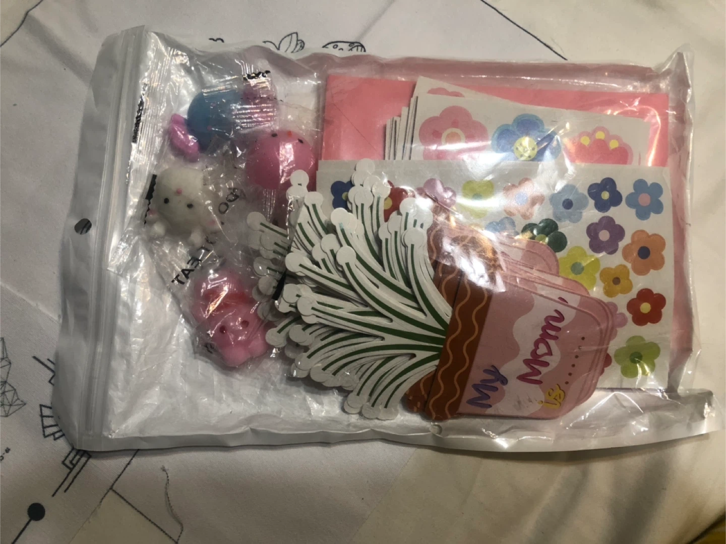 Selling a new bundle of cute craft supplies! Includes flower stickers, cards, and adorable little mochi squishies. Perfect for scrapbooking, card making, or just adding some fun to your projects!