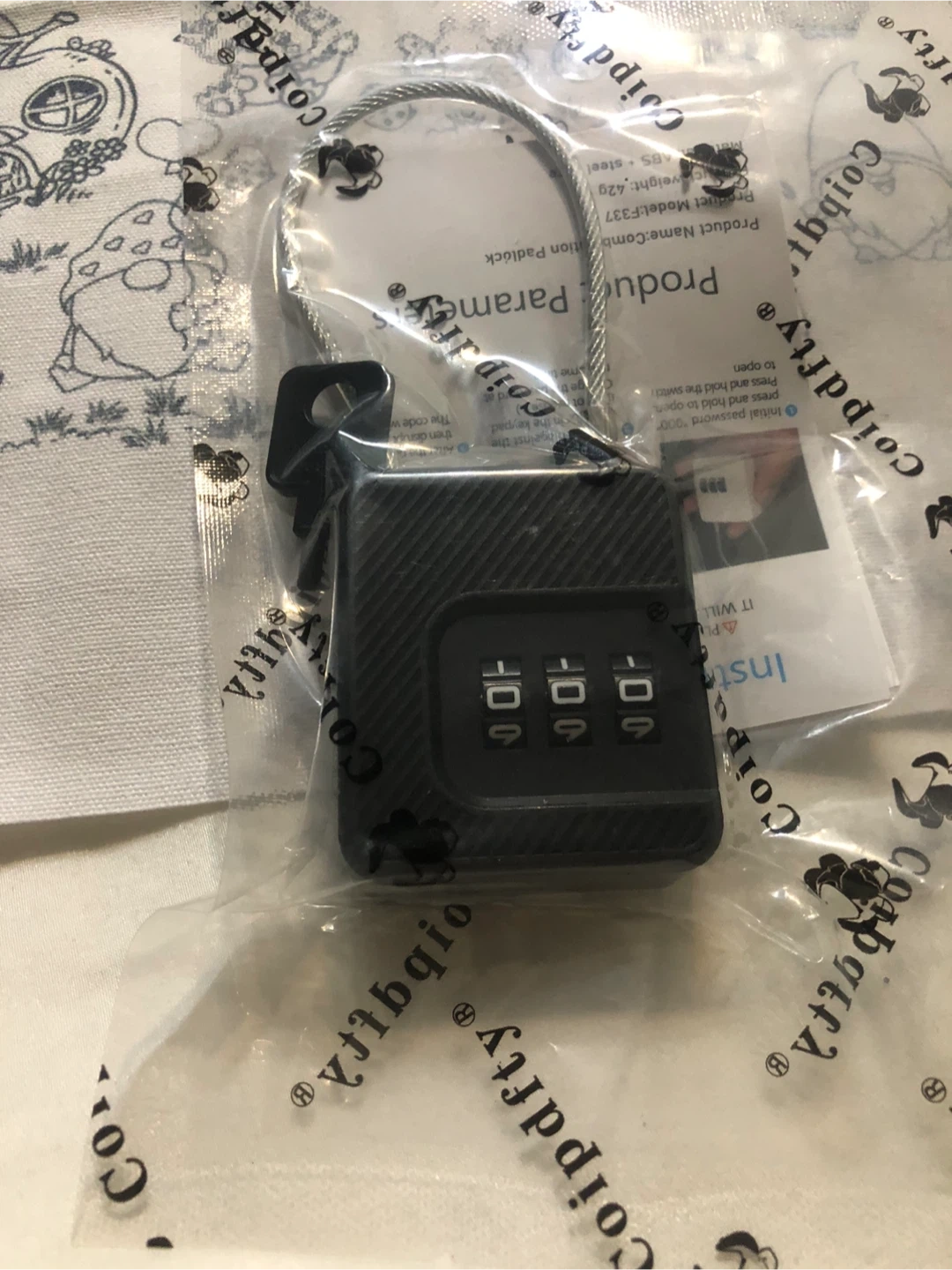 I'm selling a brand new combination padlock. It's model F-337 and made of ABS and steel. It comes in its original packaging with instructions!