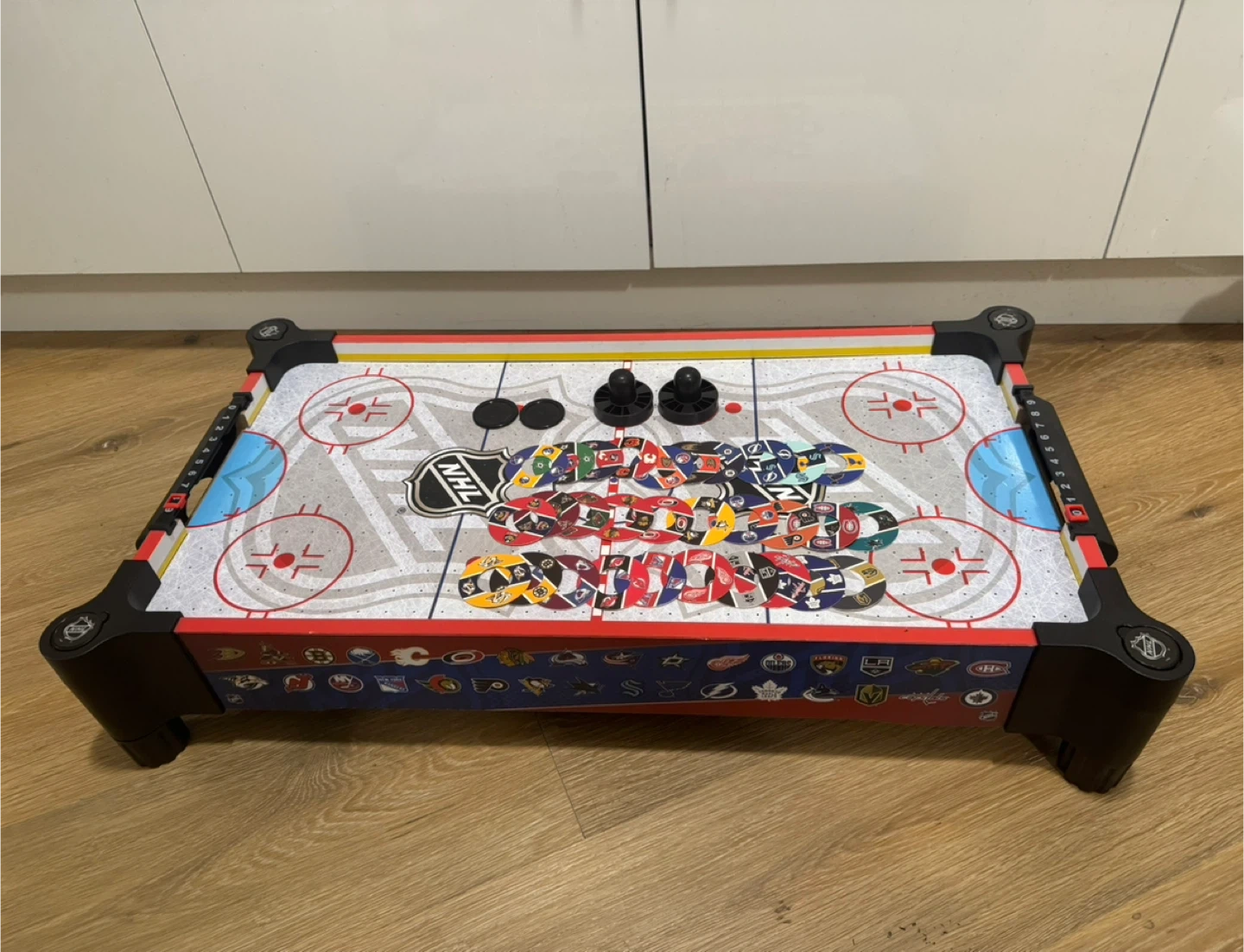 Comes with: 2 mallets, 2 pucks, NHL logo team cards and fresh batteries