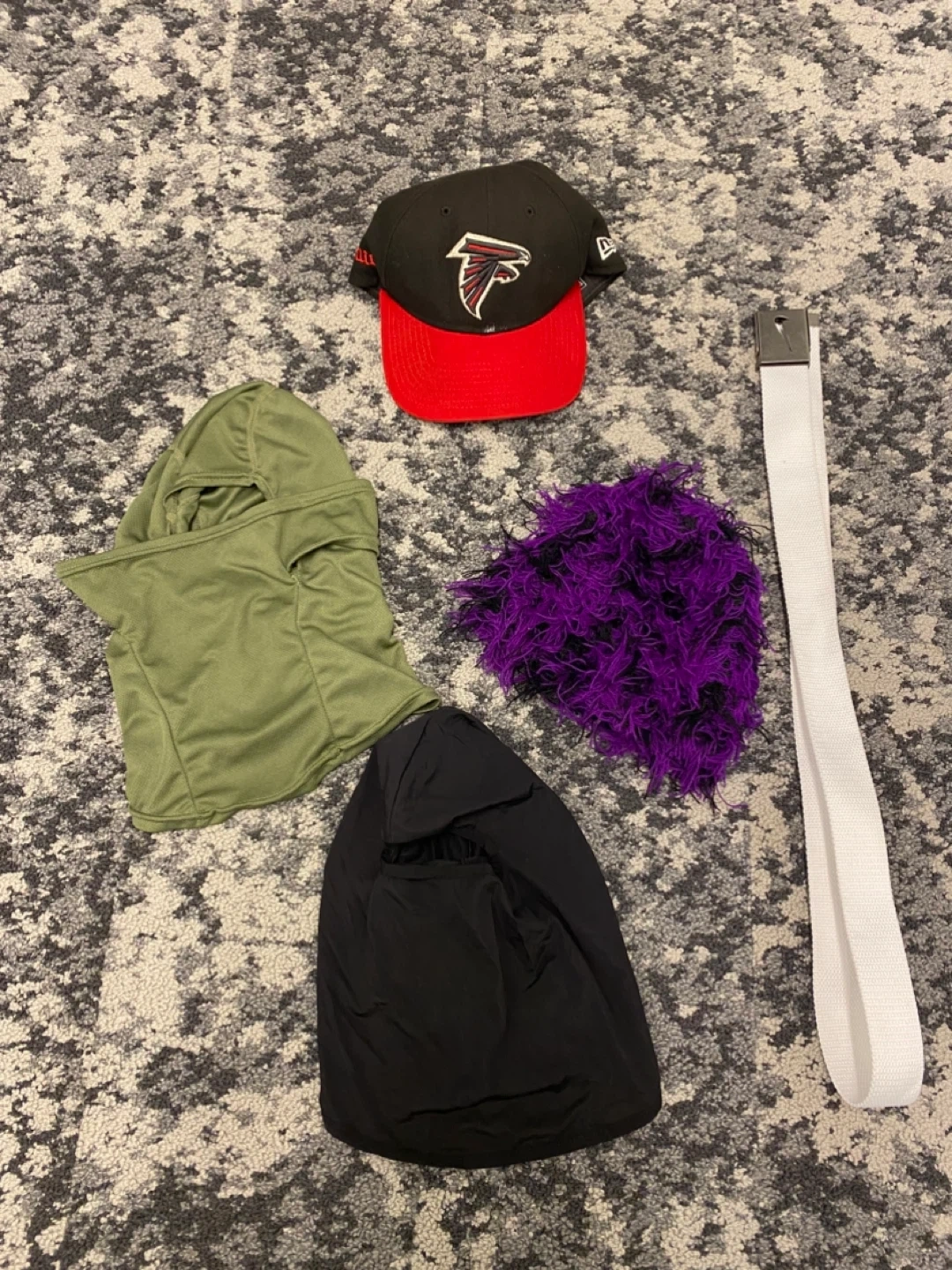 Purple ski mask great for winter and style falcons hat great for sports and style bike belt great for sports and flexing ski mask great for winter and flexing green ski mask great for winter and style