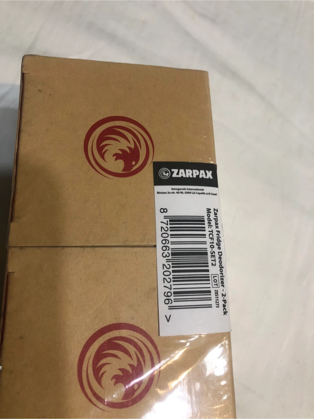 I'm selling a brand new 2-pack of Zarpax Fridge Deodorizers, model TCF10-SET2. The box is included!