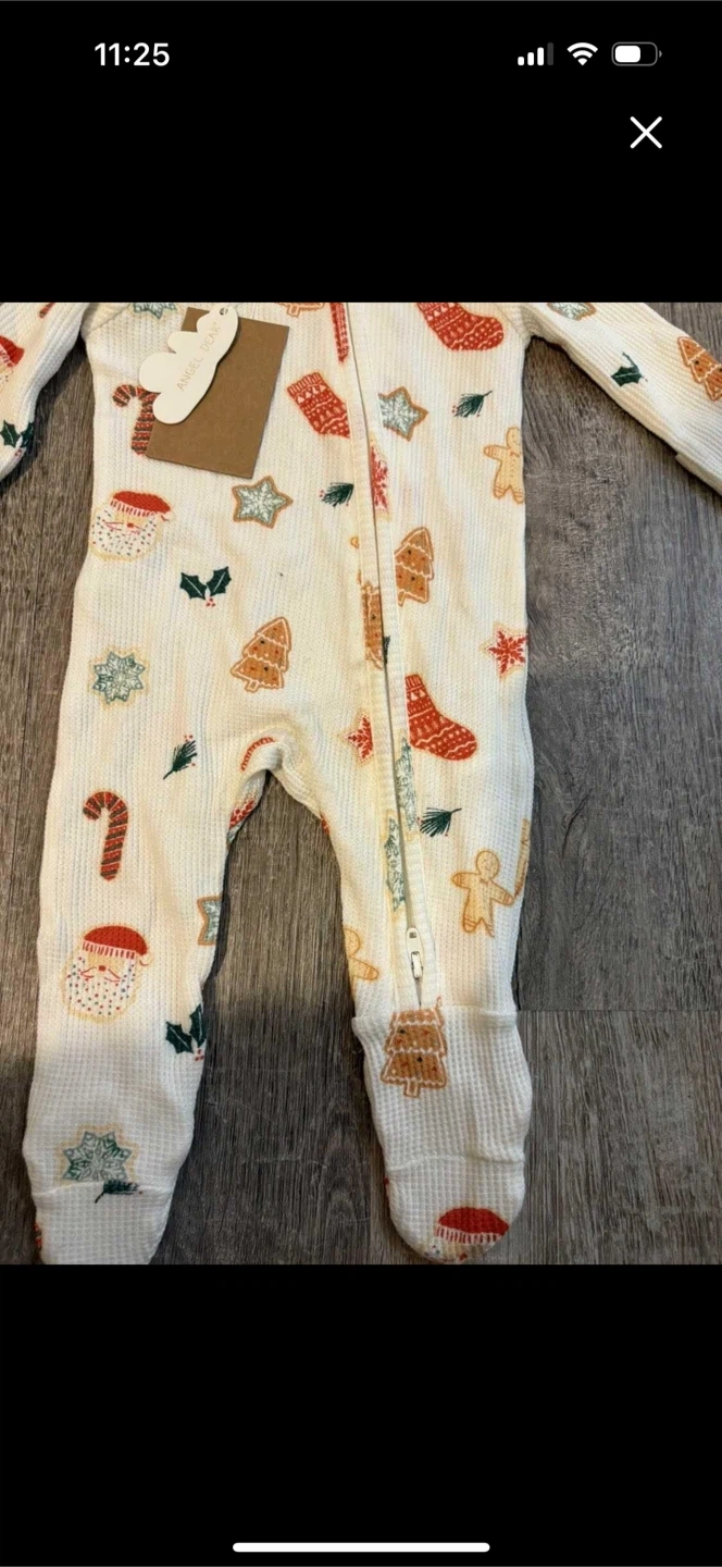 Brand new with tags, this adorable Angel Dear onesie is perfect for the holidays! It features a cute Christmas cookie pattern and is sized 0-3M. A cozy and festive outfit for your little one!