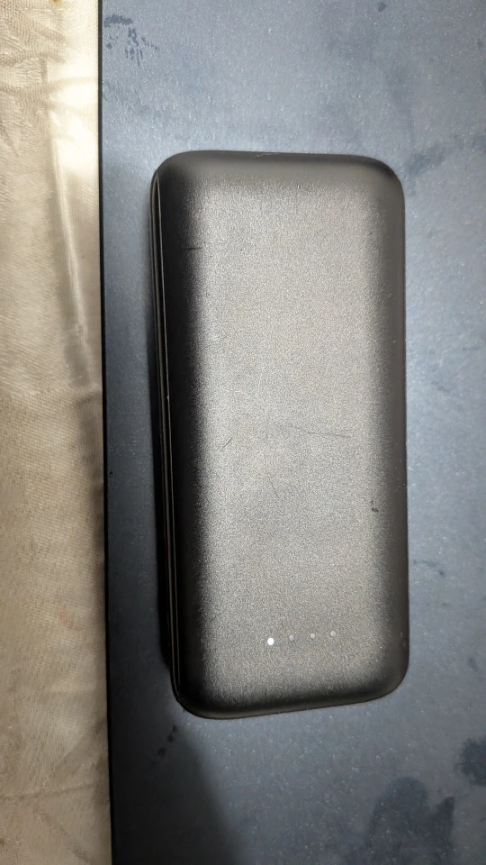 Selling a 5200mAh power bank. It has some visible scratches. It has two USB-A ports for charging your devices on the go.