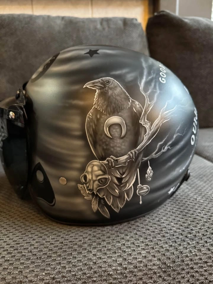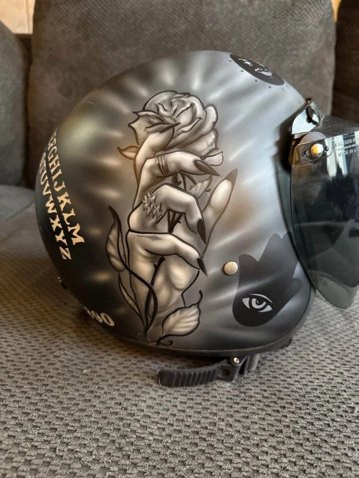 BNWOT custom painted women’s size L helmet. Bought then it was taken to get a custom pain job then stayed in the bag in my closet. Paid $175 for the helmet and custom paint job costed $300. Selling for $300 FIRM. Please no low ball offers only serious buyers please. P/U ONLY
