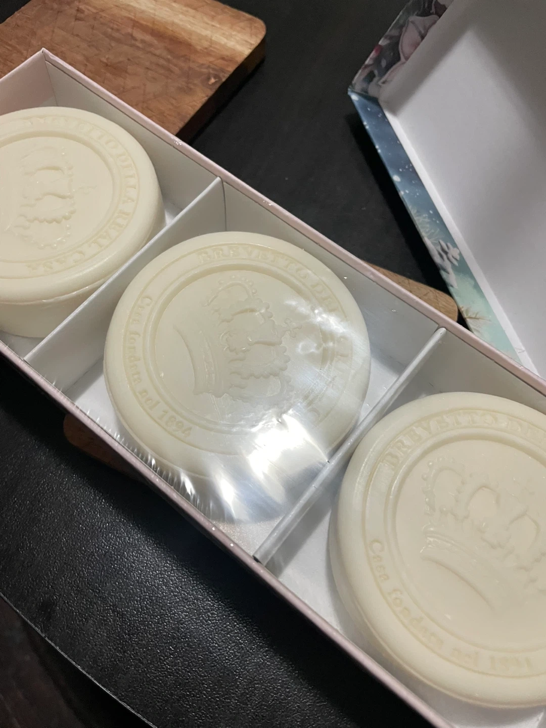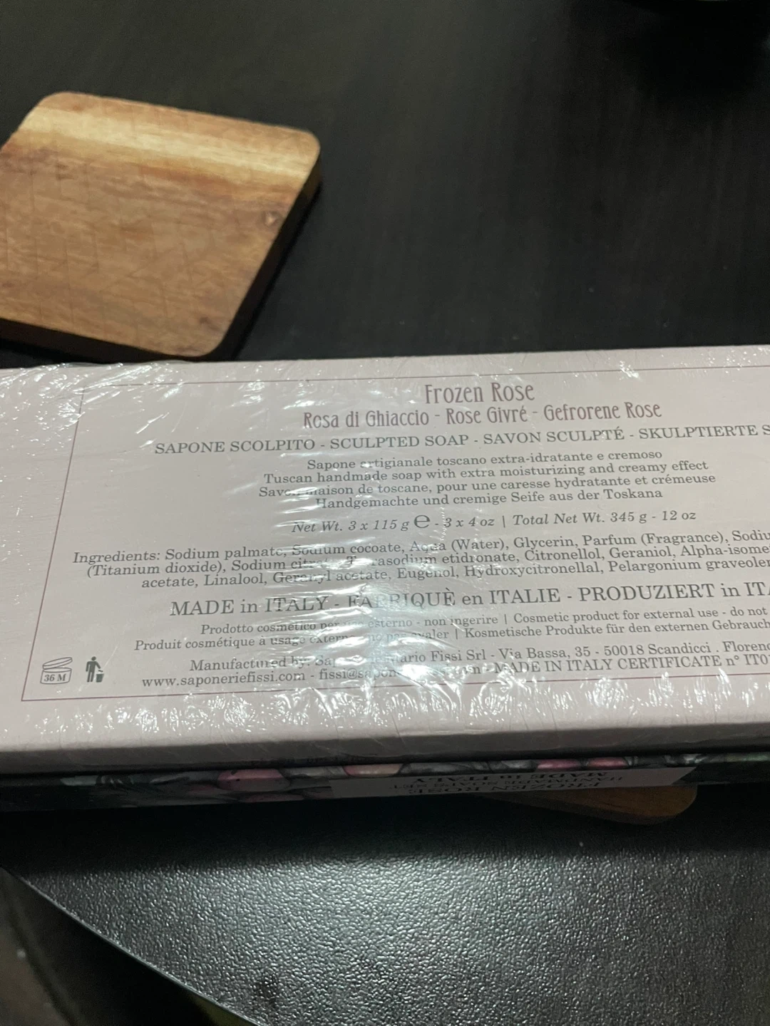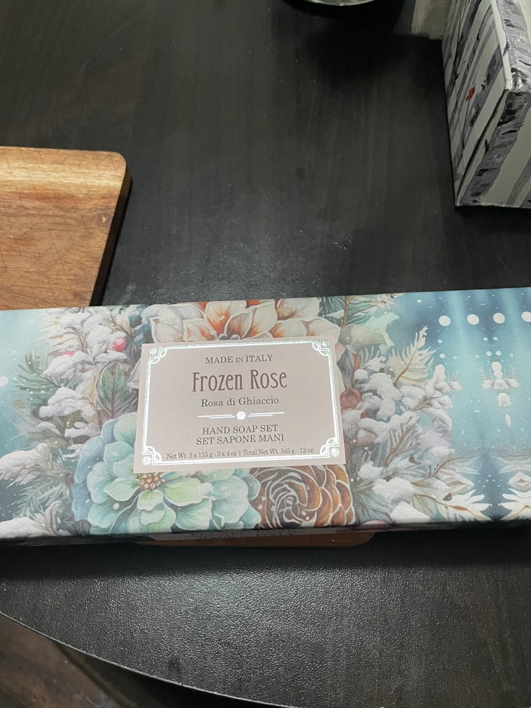 Selling a brand new Frozen Rose hand soap set, Rosa di Ghiaccio. This Tuscan handmade soap comes with extra moisturizing and creamy effect. The set includes 3 x 115 g soaps, for a total net weight of 345 g. Comes in the original box