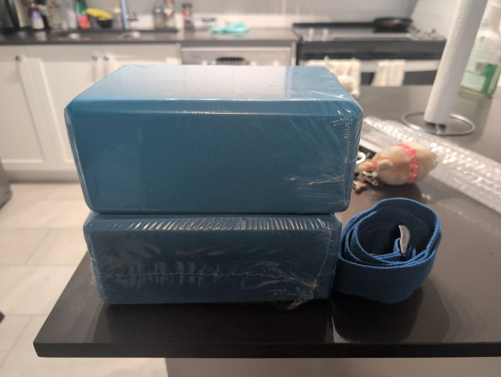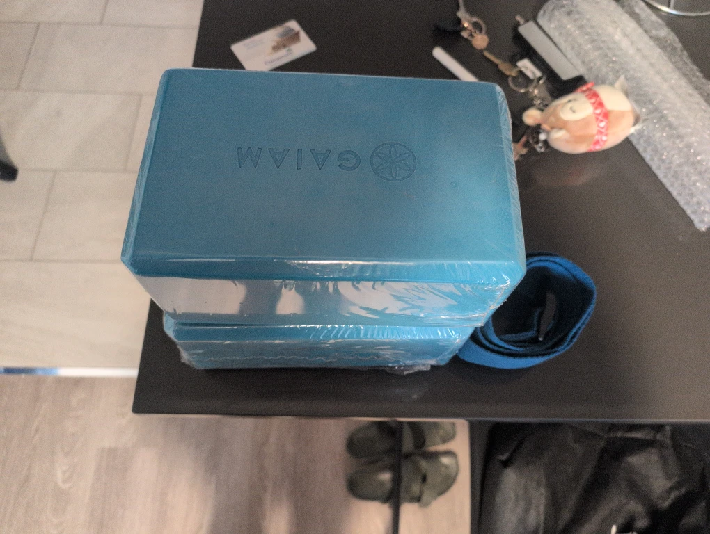 Selling a brand new Gaiam yoga block set! It includes two yoga blocks and a strap, still in the original packaging. Perfect for supporting your poses and improving your flexibility