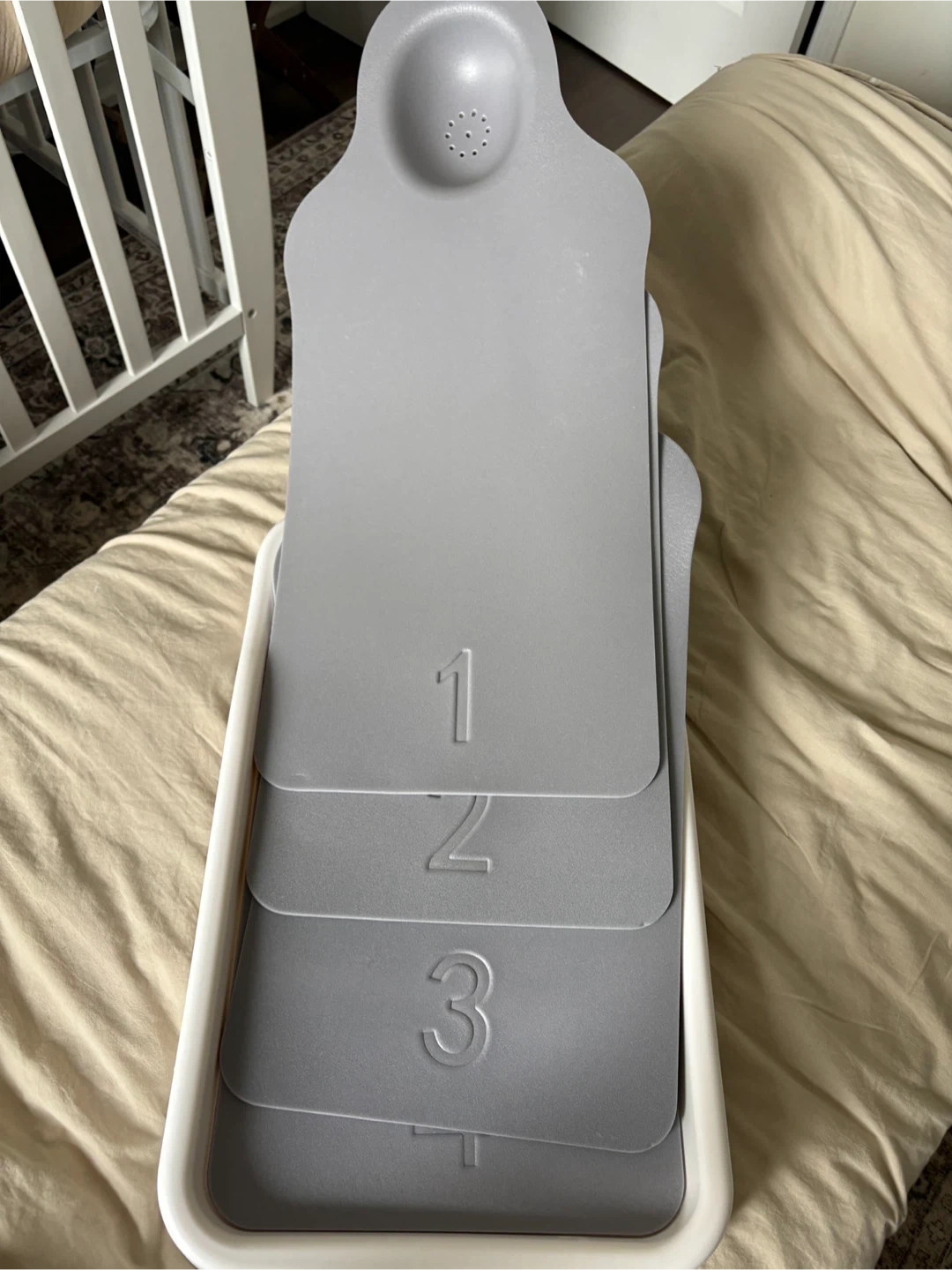Perfect Noggin bed which helped our baby shape his head to avoid a helmet later on.