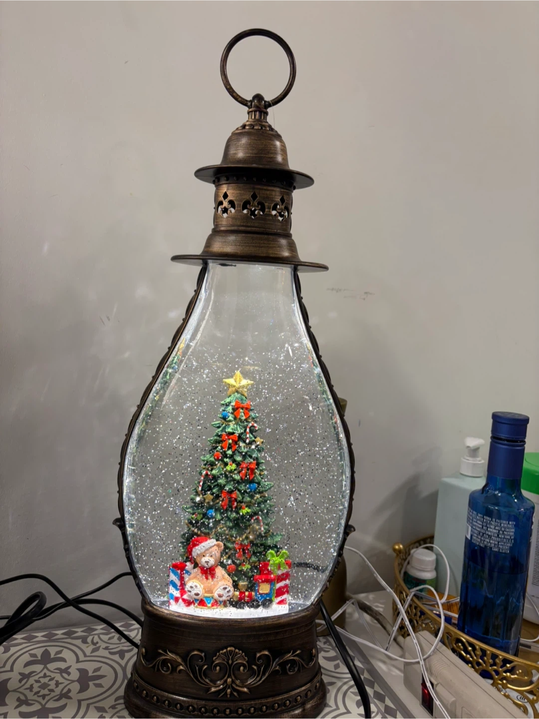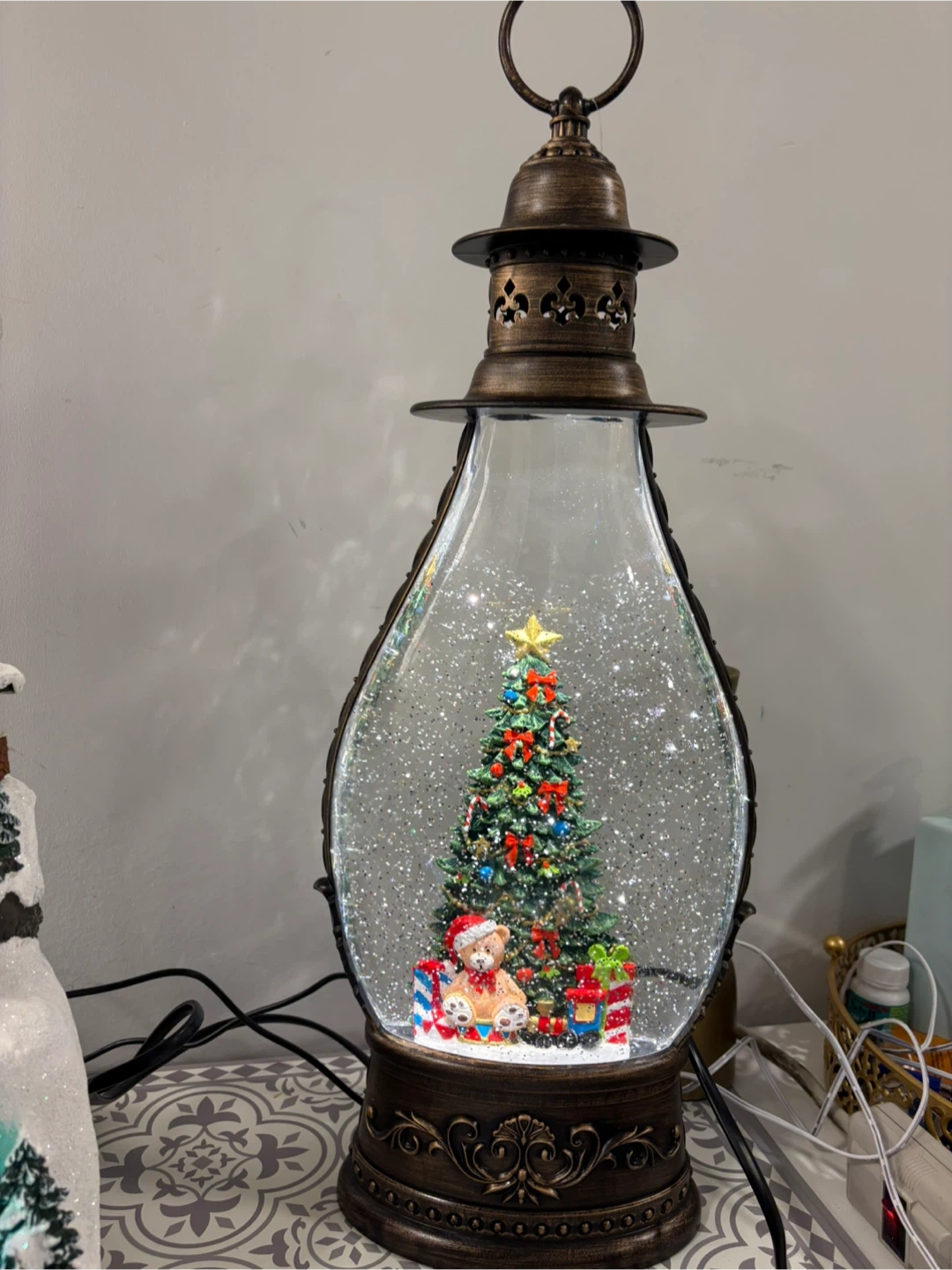 Add a touch of holiday magic to your home with this beautiful Christmas tree snow globe lantern! The lantern features a charming Christmas tree, complete with a star on top, surrounded by falling snow. It's perfect for creating a cozy and festive atmosphere in any room of your home