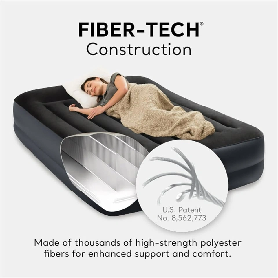 INTEX Dura-Beam Standard Pillow Rest Fiber-Tech Air Mattress WITH Built-in Electric Pump - 10" RAISED - QUEEN - navy blue ( MODEL: AP619D)