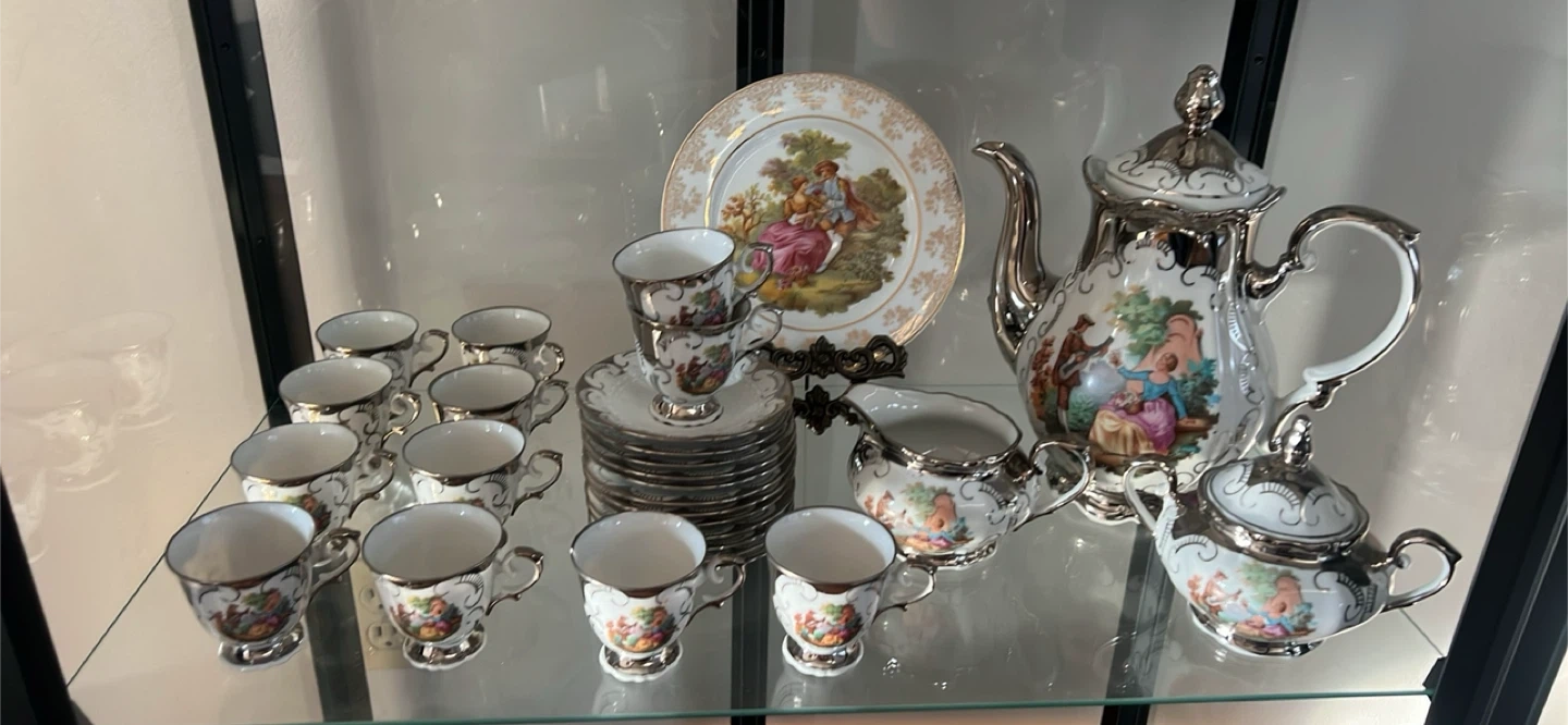 Selling a beautiful Hutschenreuther Tirschenreuth tea set! It features delicate designs and is perfect for afternoon tea or displaying in your china cabinet. The set includes a teapot, creamer, sugar bowl, cups, saucers, and a plate.