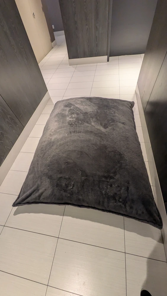 This LoungeandCo Bean Bag Lounger provides a variety of lounging options. Like a gigantic pillow, it molds around you to suit your style. Filled with made in Canada, high quality polysterene beads free of CFCs and HCFCs. The expanded polysterene beads are inert, meaning they are harmless to the environment and can even be reuse and transform into new products. It provides unparalleled comfort and the luxurious Chenille cover is incredibly soft yet durable. It's in great shape and perfect for lounging around the house.