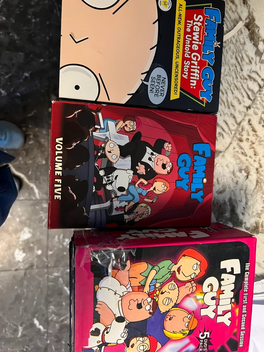 Buy & SellFamily Guy DVD’sFamily Guy DVD’s$20Selling a collection of Family Guy DVDs!ConditionGoodWHERE TO MEETCheck LocationView MapSELLERverifiedTriciaHuron Heights720 reviews0 chats·0 favorites·1 views
