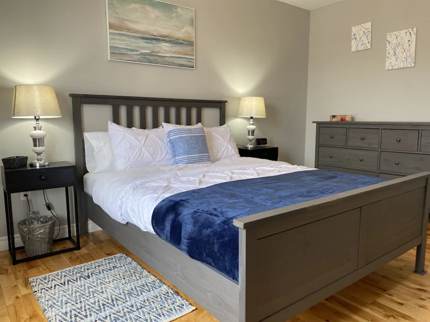 Selling a Hemnes bed frame from IKEA in the grey stained finish. It's in great shape and ready for a new home. The dimensions are approximately 213 cm (83 7/8") in length and 167 cm (65 3/4") in width. The headboard is 120 cm (47 1/4") tall, and the footboard is 66 cm (26") tall