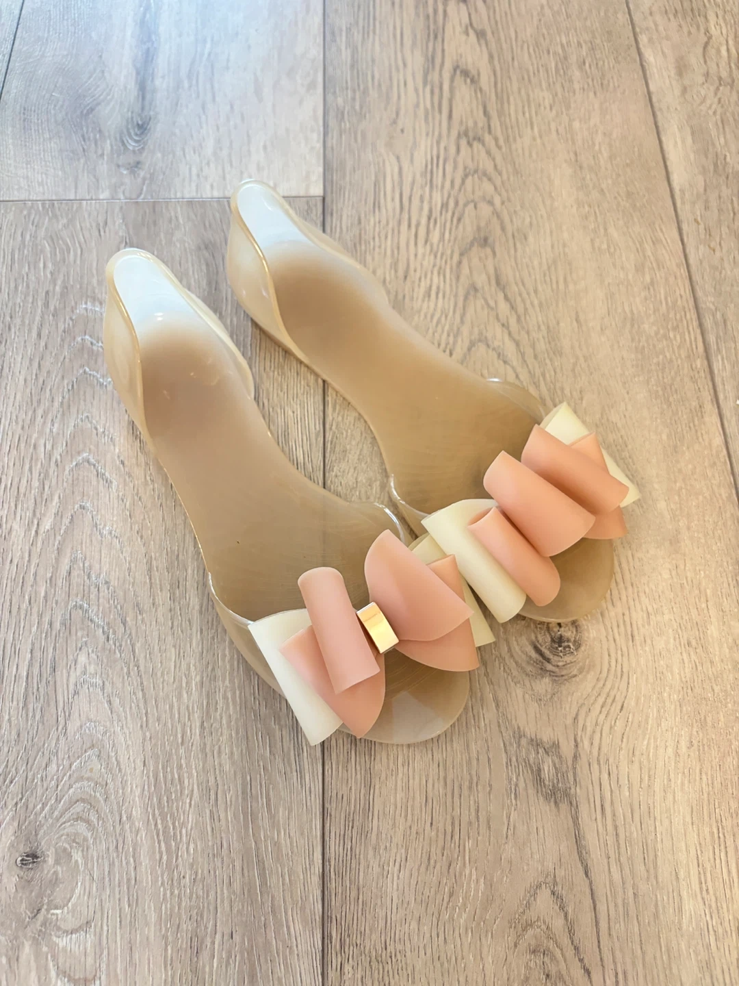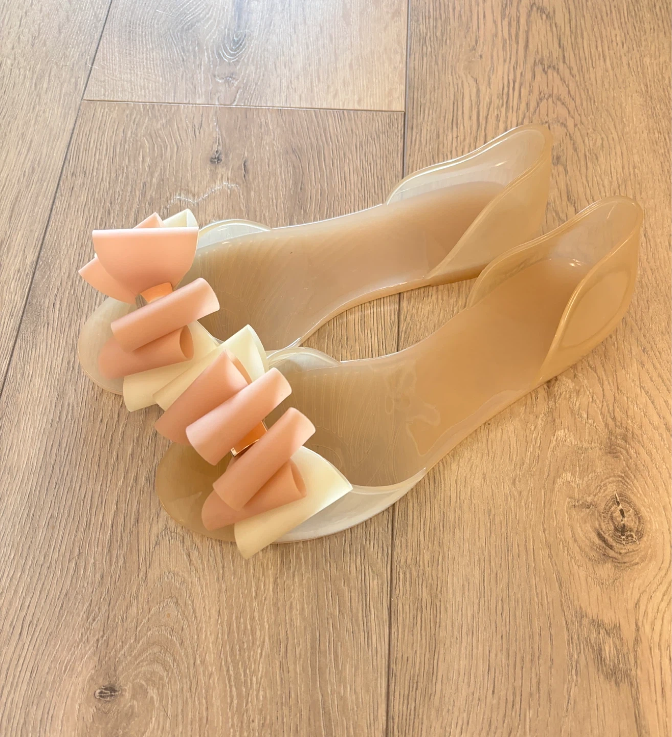 Melissa Clear Jelly Flats with Bows, Size 7.5