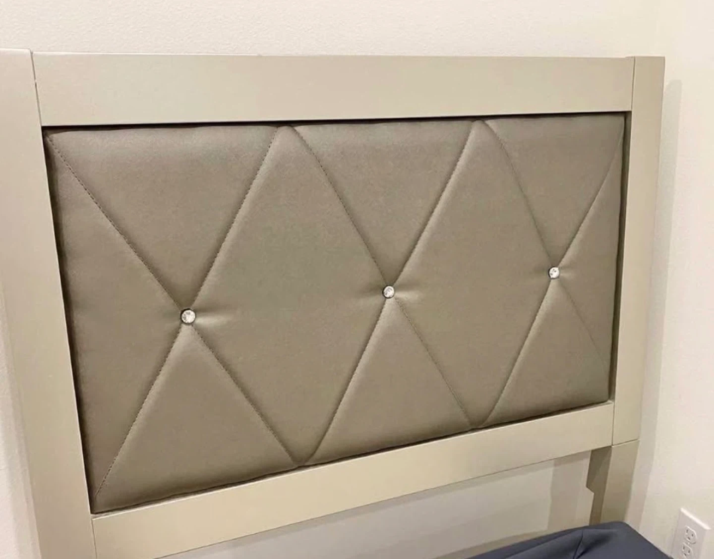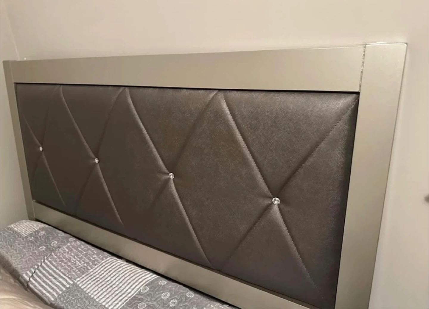 Selling a stylish upholstered headboard! It features a diamond-tufted design with button accents, adding a touch of elegance to any bedroom. The neutral colour makes it easy to match with different bedding and decor styles. It's in great condition and ready to find a new home