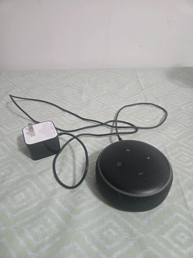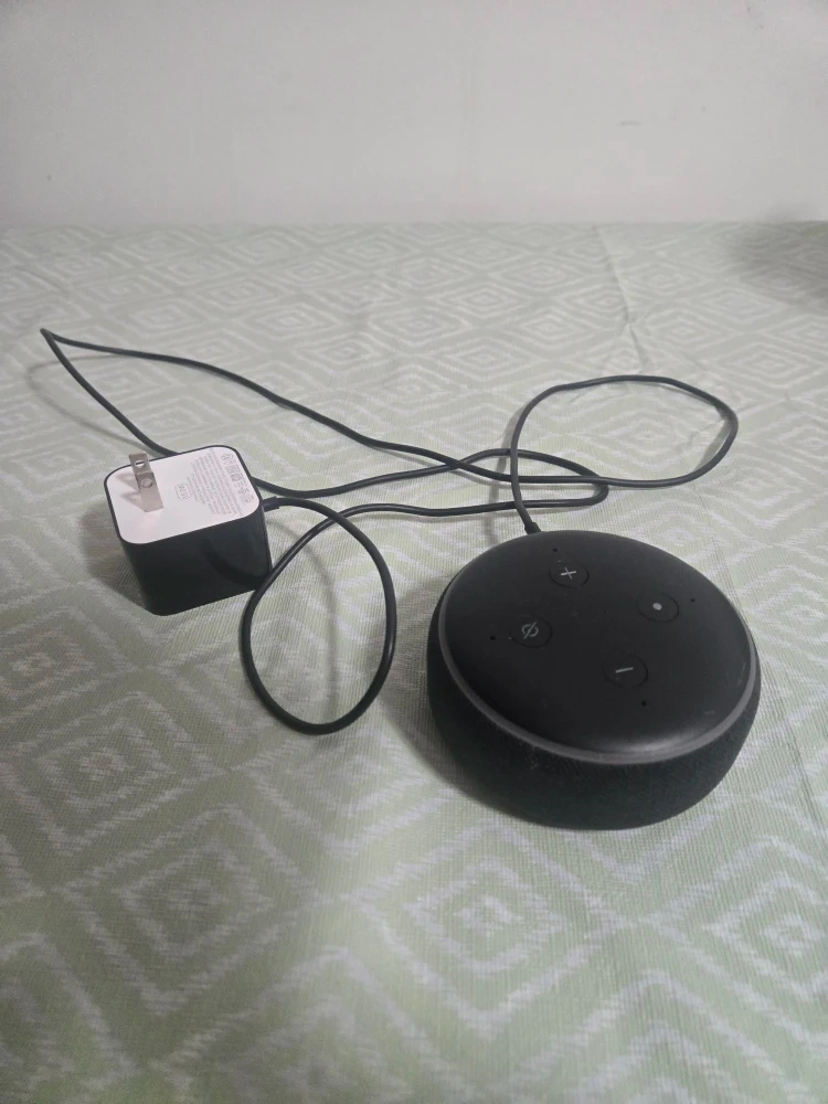 Selling an Amazon Echo Dot (3rd Generation) in great condition! It's a smart speaker that's perfect for any room. It comes with the original charger so you can set it up right away. It's a compact and easy way to voice control your music and smart devices