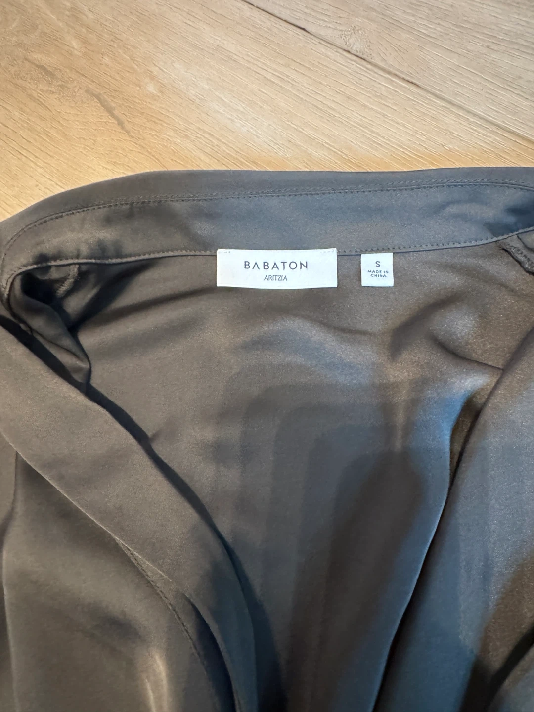 Selling a Babaton Aritzia wrap dress in size small, please note the actual dress is olive green, not black! There is a stain on the cuff and at the bottom, not too noticeable but I’m not sure how to get it out (hence the low price). It's a beautiful dress that's perfect for any occasion!