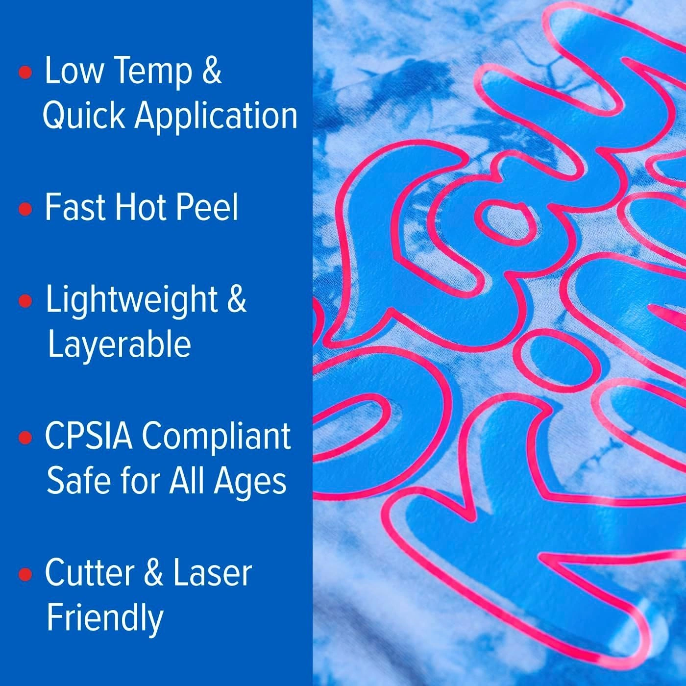 HOT PEEL – There’s no wait time with a hot peel, making your projects even quicker and easier with this ready-to-go HTV.