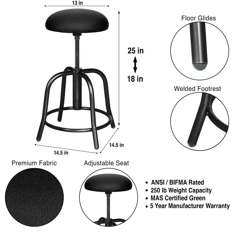 The Vince Fabric Padded Swivel Stool is a stylish and functional addition to any home or office space with a sleek, contemporary design and a plush padded seat. The seat swivels 360 degrees. It's built to last, with a weight capacity of 300 lbs and a durable 18 gauge steel frame. The non-marring glides protect your floors from scratches.