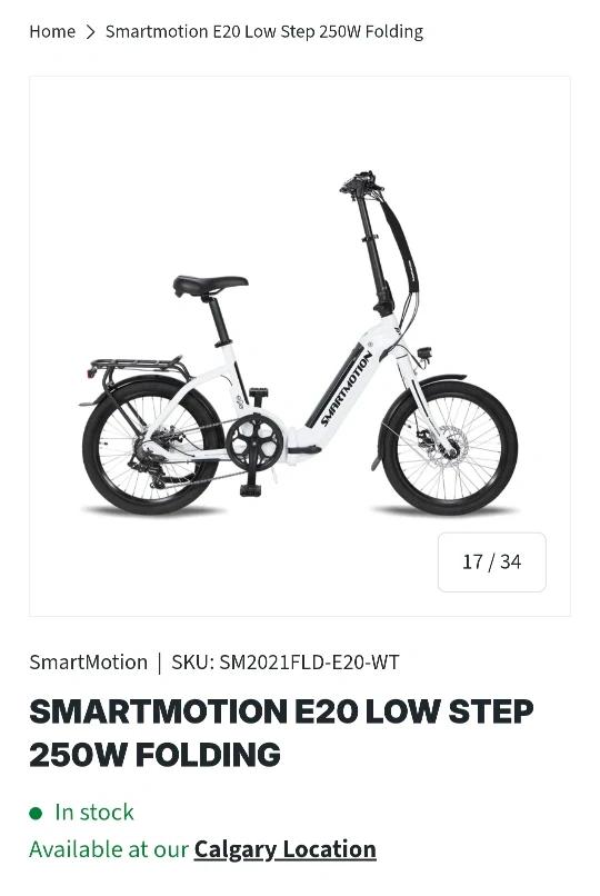 Selling a brand new SmartMotion E20 Low Step 250W folding e-bike! It's still in the box and has never been used. Perfect for commuting or leisurely rides around town. This model is known for its easy step-through design and compact folding capability, making it super convenient for storage and transport. Get ready to enjoy the ride!