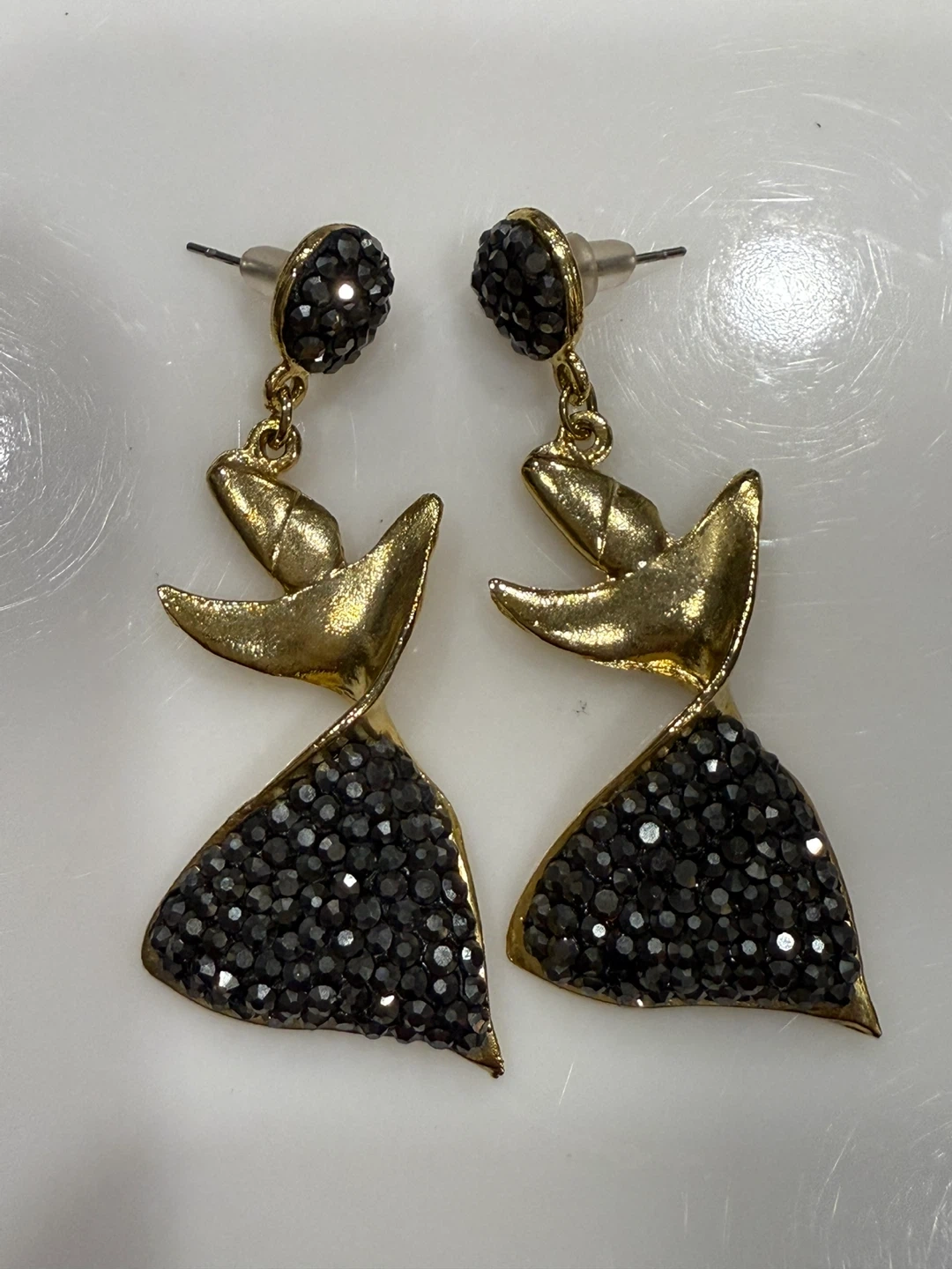 Gorgeous pair of drop earrings featuring gold accents and black beaded detailing. They're in great shape and ready to add some sparkle to your outfit!