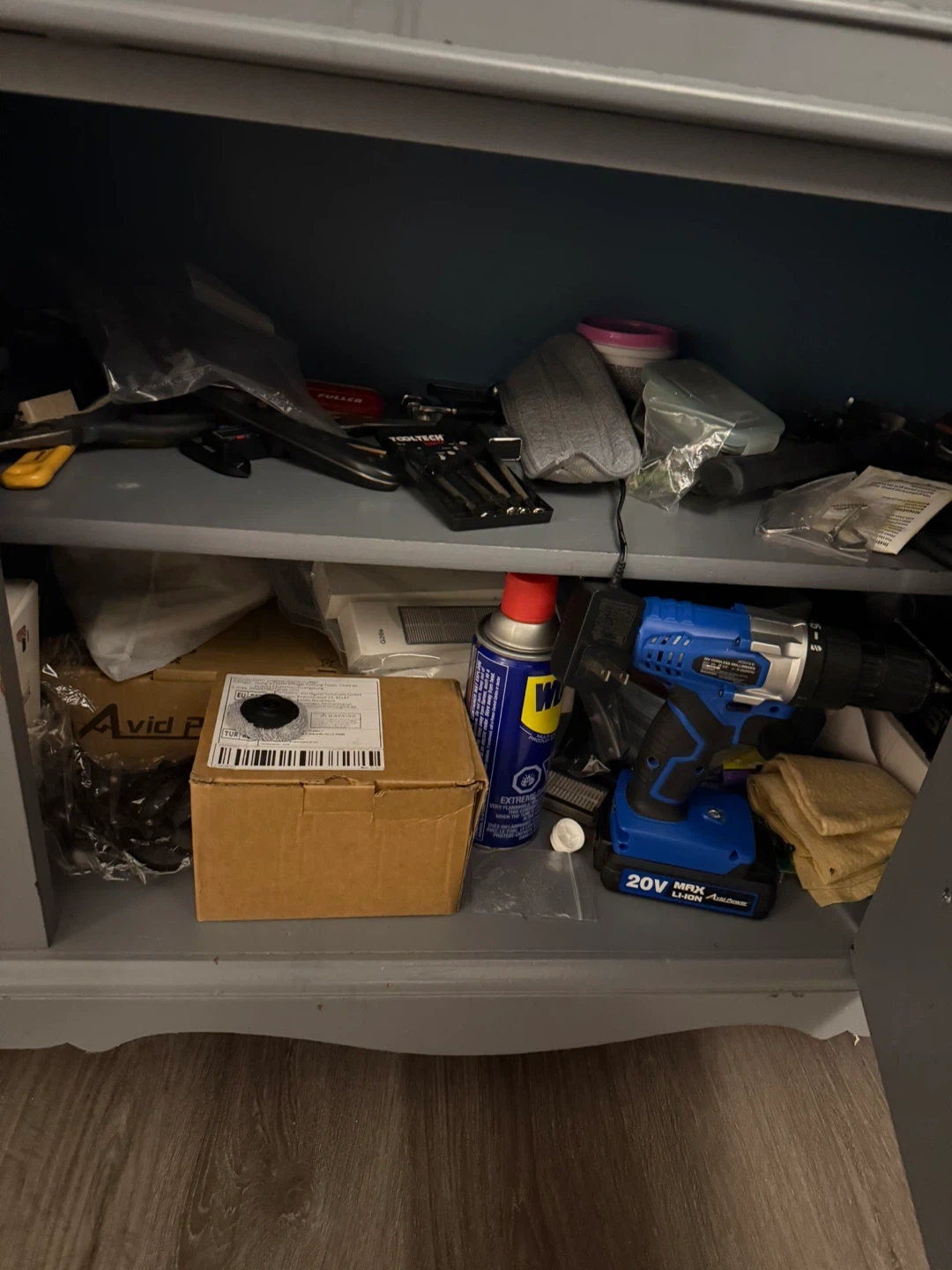 Selling a grey display cabinet. It has glass doors on the top half and drawers on the bottom half. Perfect for displaying your favourite items!