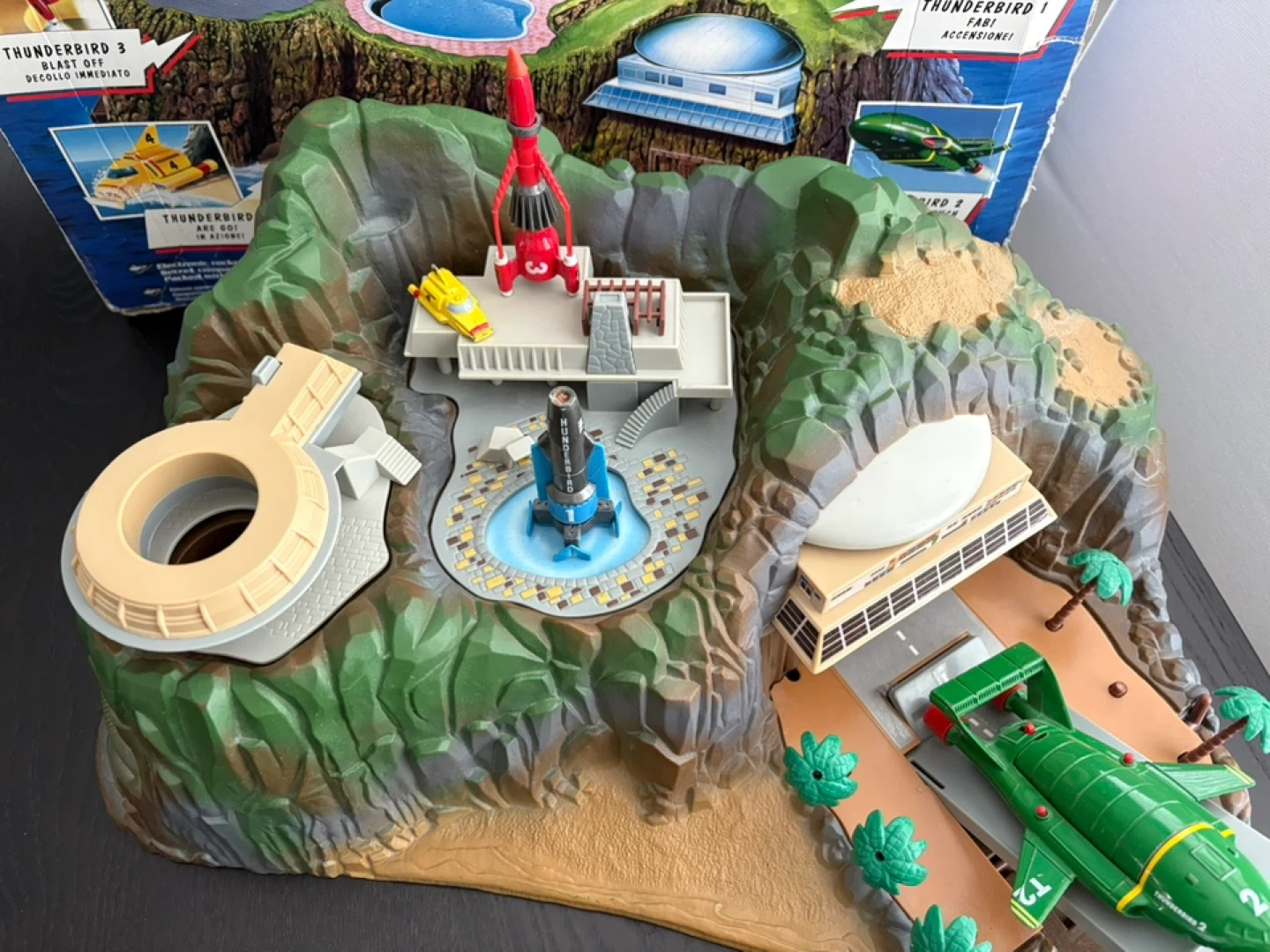 This playset recreates the secret island headquarters from the Thunderbirds television series.