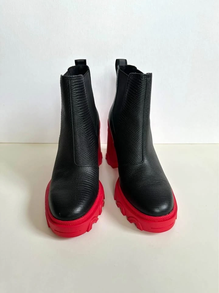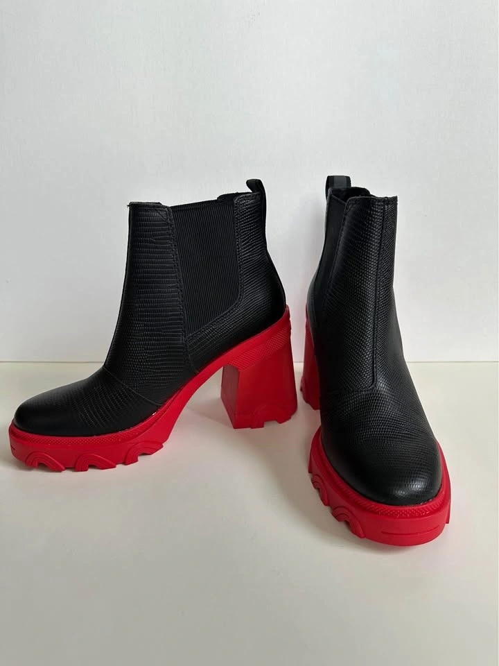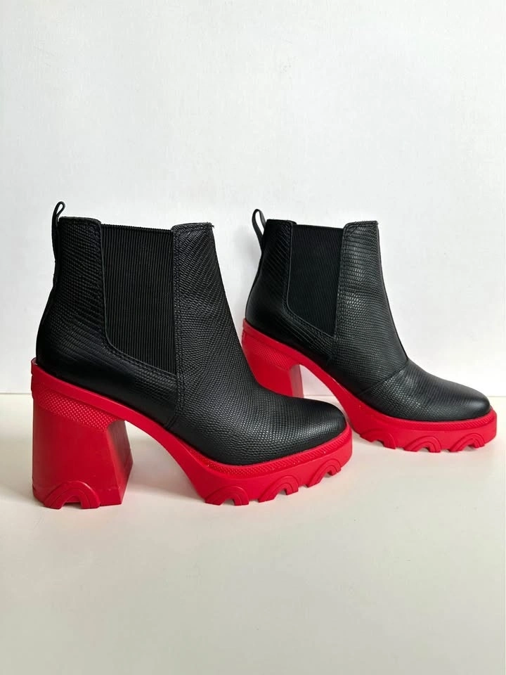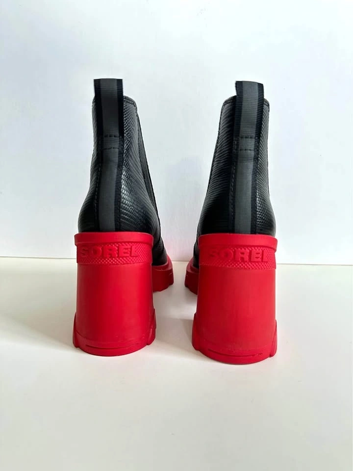 Sorel Black Brex Heel Chelsea Boot With Red Sole Size 37
