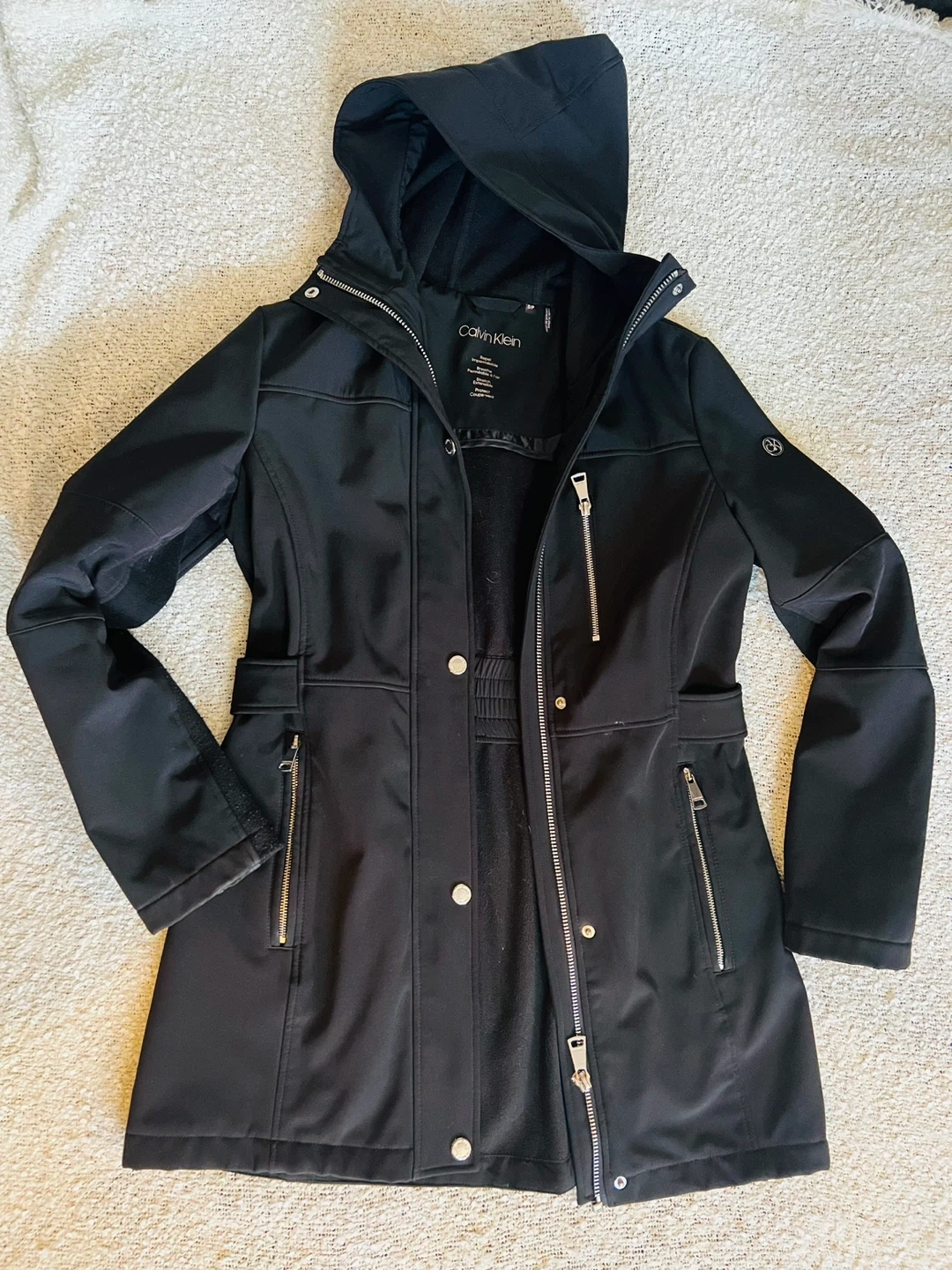 Calvin Klein black hooded jacket for sale in size small. It's in great condition and has a stylish design.