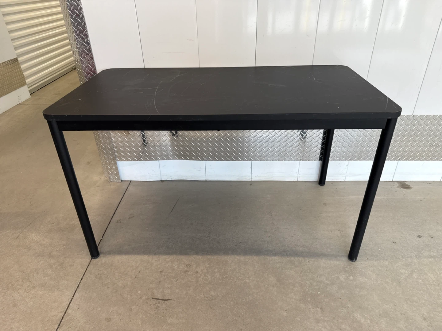 Selling a black dining table in good condition. It's a great size for a small dining area or kitchen. The table has a sleek, modern look with a black top and matching black legs. Perfect for everyday use!