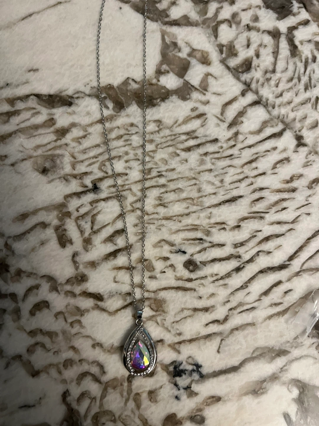 Buy & SellSilver Teardrop Pendant NecklaceSilver Teardrop Pendant Necklace$10Selling a lovely silver necklace with a teardrop pendant. The pendant has an iridescent centre surrounded by clear stones.ConditionNewWHERE TO MEETCheck LocationView MapSELLERverifiedTriciaHuron Heights720 reviews0 chats·0 favorites·4 views