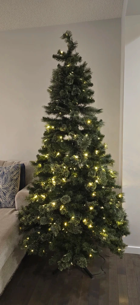 Selling my 7.5 ft pre-lit Christmas tree in good condition. No damage — only a few lights at the top are slightly less bright but still work normally.