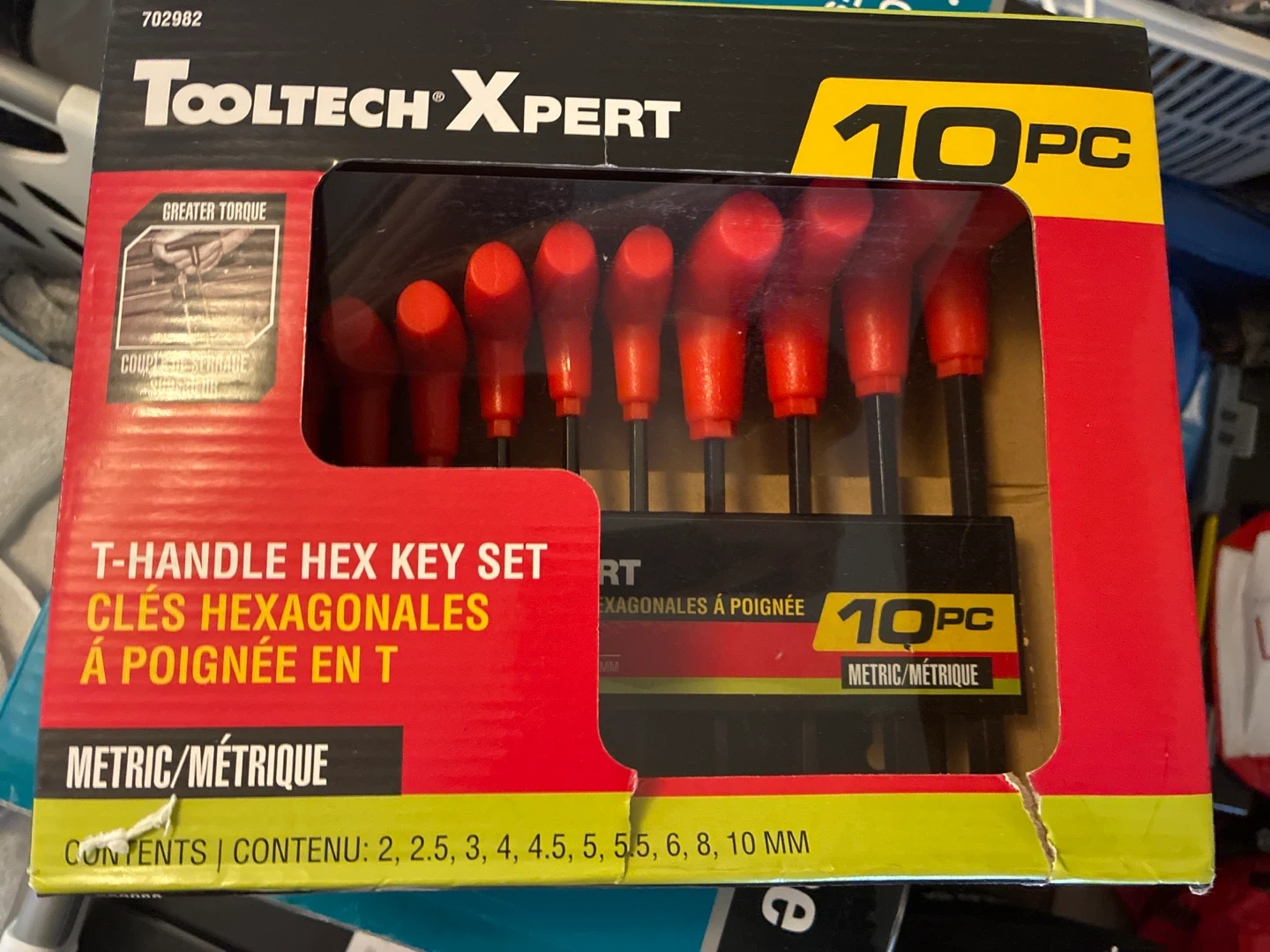 Selling a Tooltech Xpert T-Handle Hex Key Set. It includes 10 pieces with metric sizes 2, 2.5, 3, 4, 4.5, 5, 5.5, 6, 8, and 10 mm