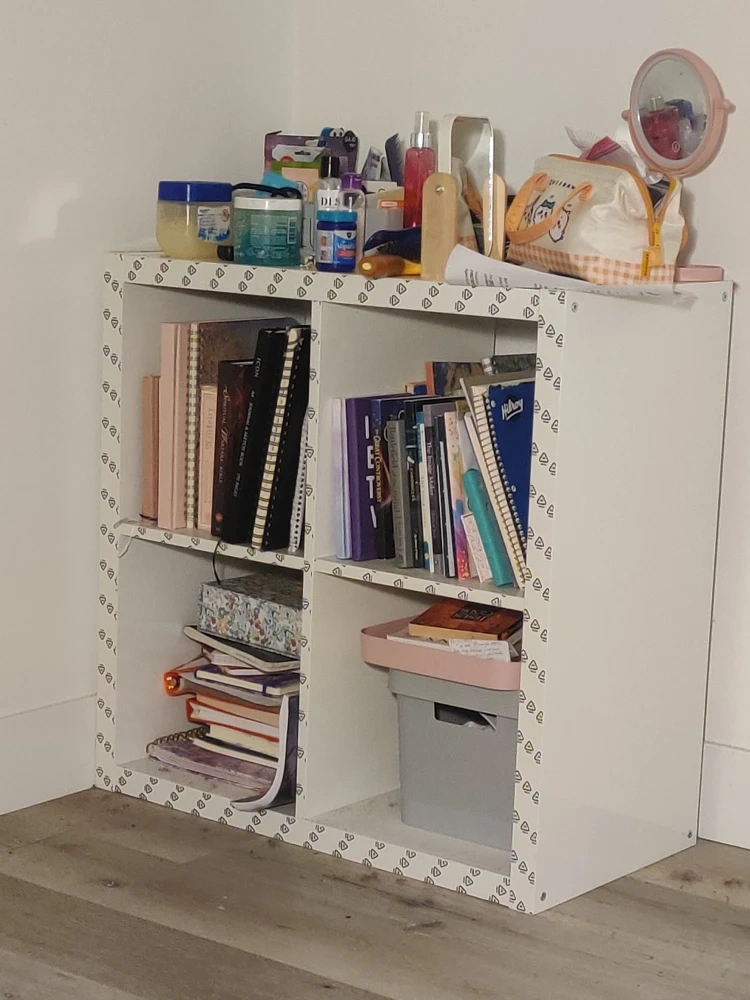 Selling a handy white 4-cube storage shelf! It's perfect for organizing books, decor, or anything you need to keep tidy. It's in great condition and ready for a new home