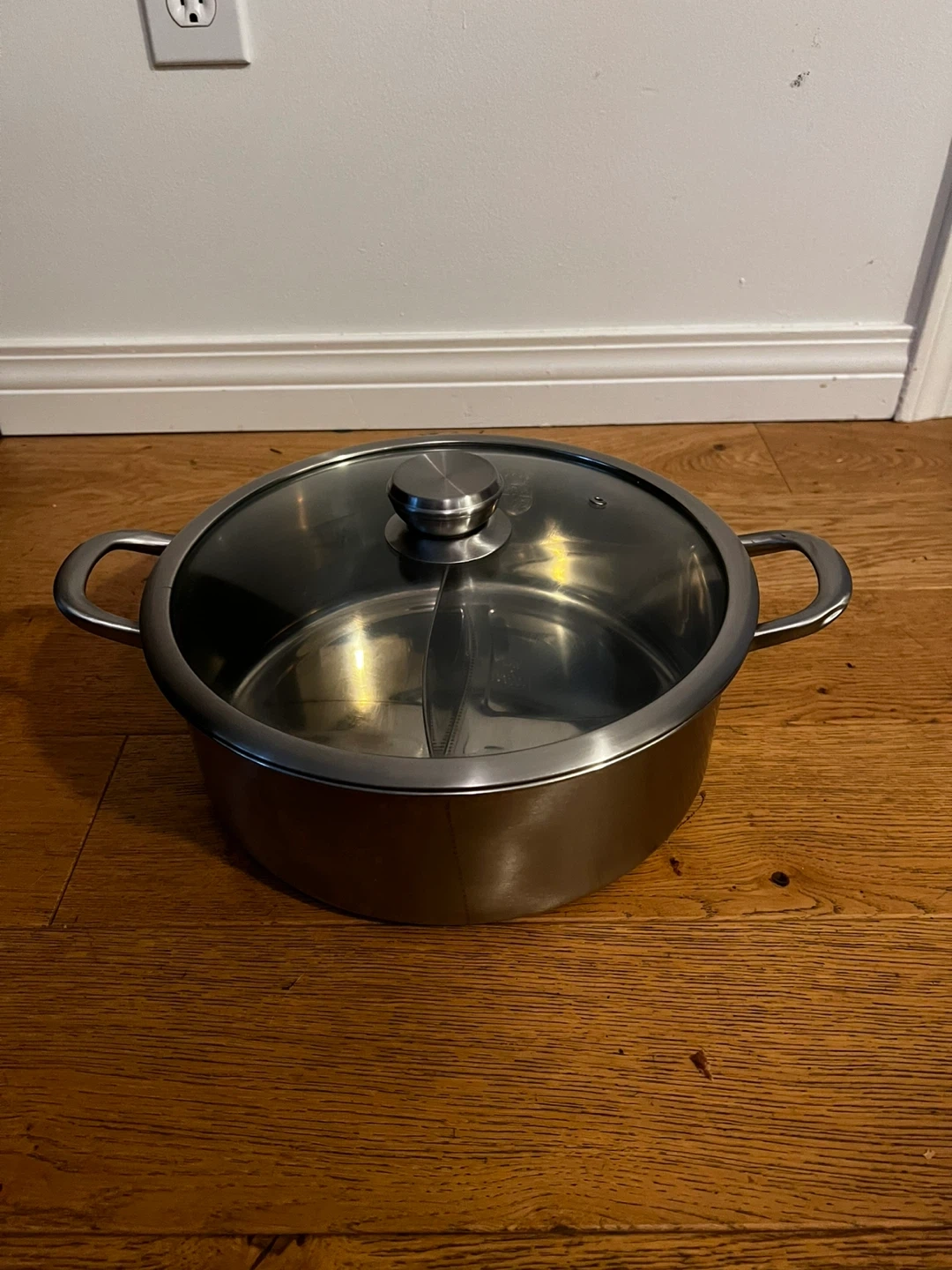 Selling a new stainless steel hot pot from Laotesi! It's 30cm in size with two hot pot divisions and comes with a glass lid. Perfect for hot pot nights with friends and family! The original box is included.