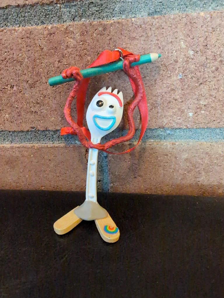 Selling a Forky ornament from Toy Story. It's in great condition and ready to hang on your tree or add to your collection! Features Forky holding a pencil with a red ribbon.
