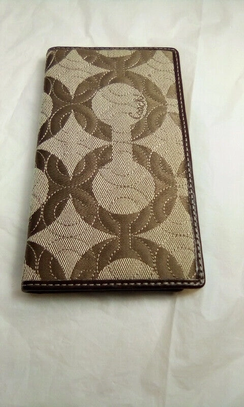 New and excellent condition Coach products from a pet free, smoke free home. Pics 1-4 Coach Madison Signature Swingpack Crossbody. This bag is clean inside and out. Multiple colors on the outside, brown leather on the top front and a khaki inside lining. Model # 44183 and includes the coach charm keychain. Pocket on the outside of the back of the purse. Measures 8.5" (h) x 7.25" across and .25" thick. Strap is 43 in total for a drop of 21.5 each side. $30. Pics 5-6 a brown leather Coach Signature Checkbook cover brand new. $10. Selling individually or as a lot for $30.