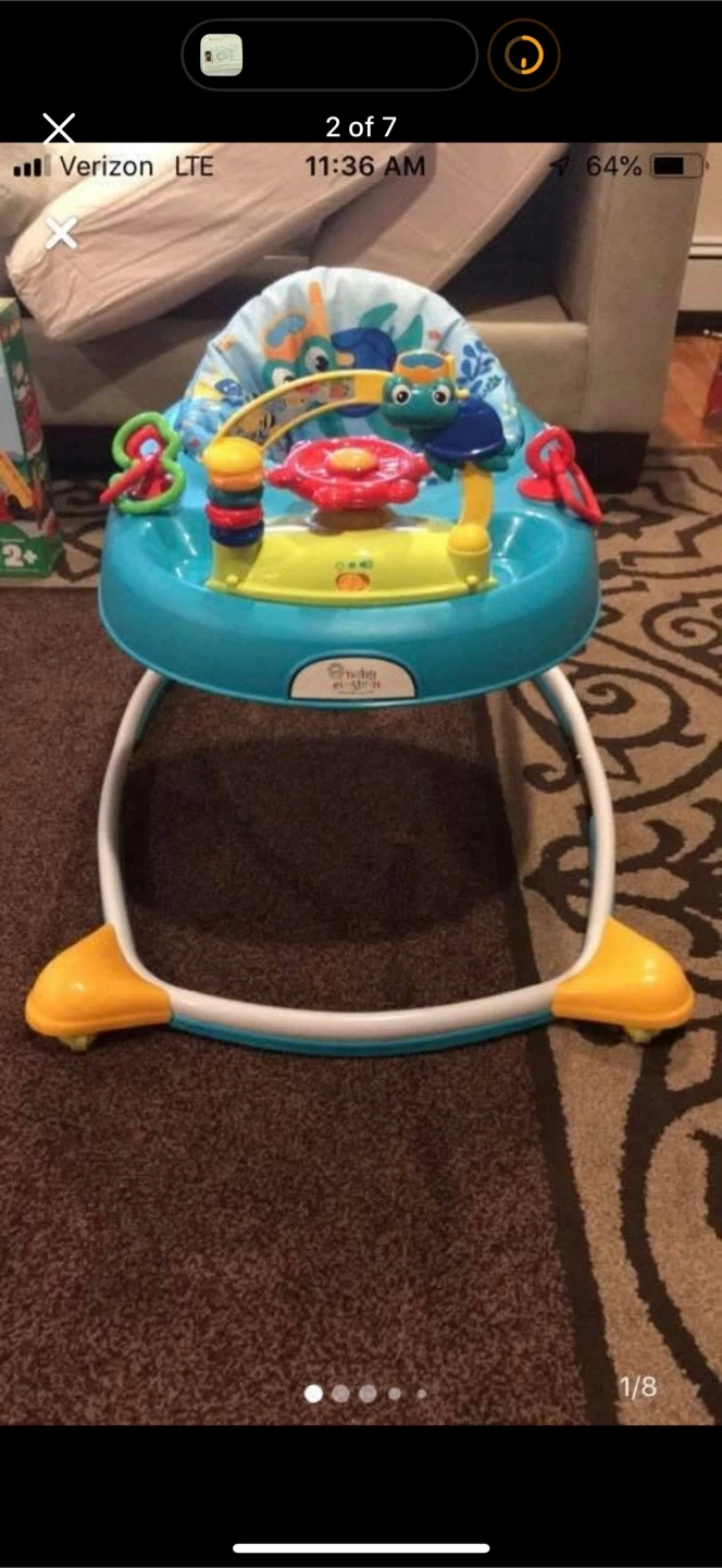 I'm selling a Baby Einstein Around We Grow Walker! It's in great condition and ready for a new home. This walker helps babies explore and move around safely. It features interactive toys and activities to keep your little one entertained. Perfect for supporting your baby's development and providing hours of fun!